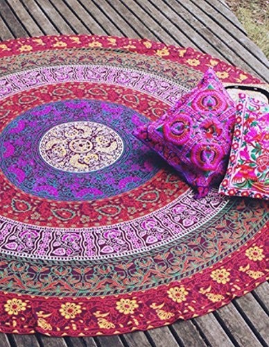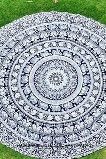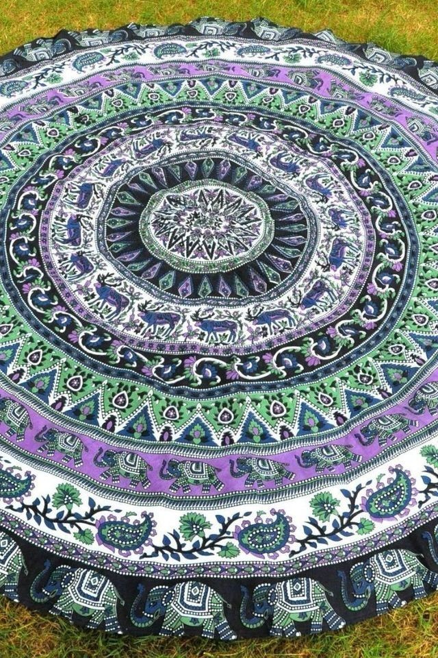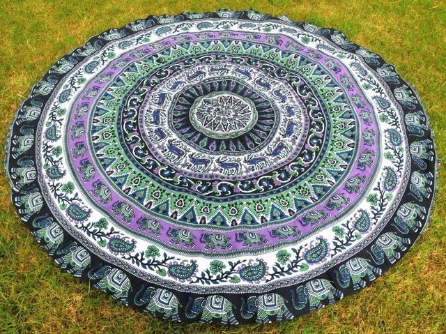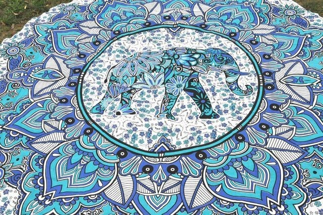 ビーチマット 敷物 ラウンド型 ブランケット ビーチタオル ブルー シフォン 象 幾何学模様 ビーチ小物