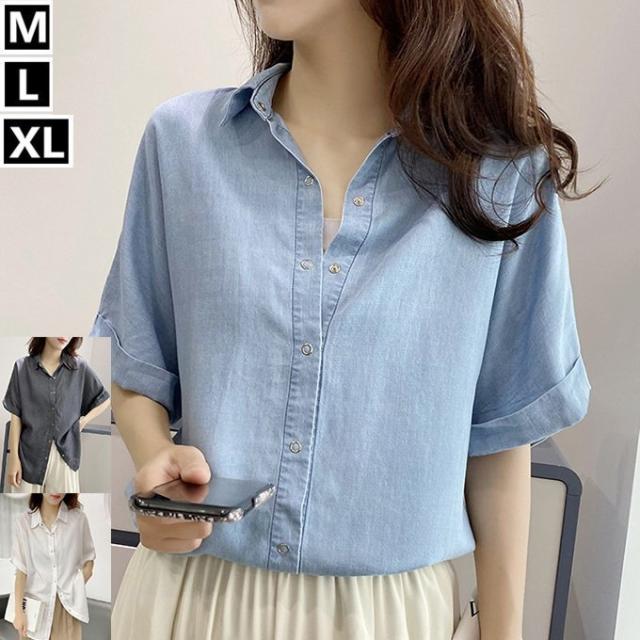 2021 春夏物新作 レディース リヨセル デニム 無地 ドルマン 半袖 ロング シャツ テンセル ソフトデニム しっとり 柔らか ドロップショルダー ゆったり インディ