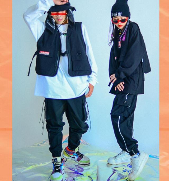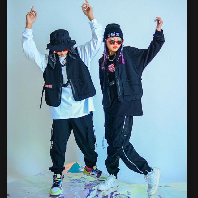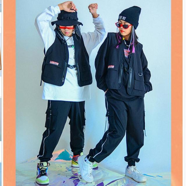 キッズダンス衣装 HIPHOP ヒップホップ 吹奏楽 演出服 ジャーズ ロングパンツ ベスト 長袖 踊り 団体服 アピール 卒業 ブラック 120-170cm