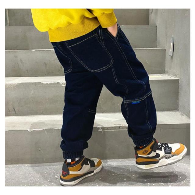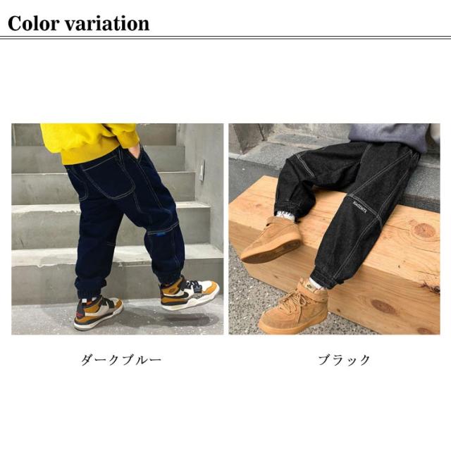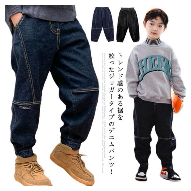 送料無料 パンツ キッズ 裏起毛 デニム パンツ 裾ゴム ゆったり ジーパン ジーンズ ロング ズボン カジュアルパンツ ベビー 子供服 長ズボン 防寒 寒さ対策 暖かい 無地 ボトムス デニムパンツ ウエストゴム ポケット付き 子供 男の子 ジュニア 100〜160cm