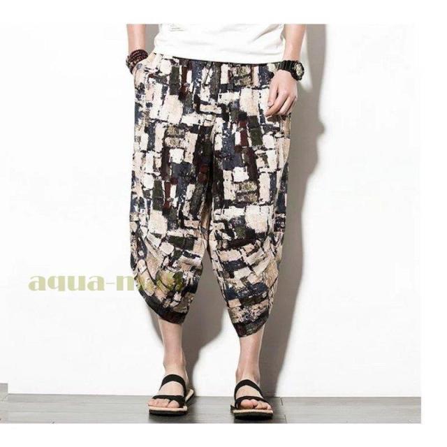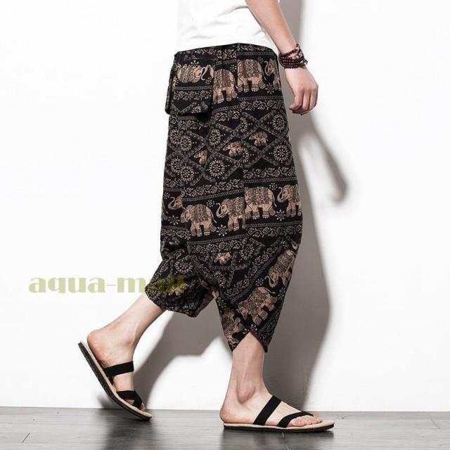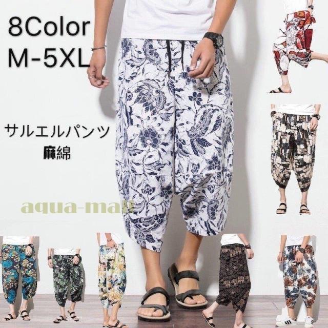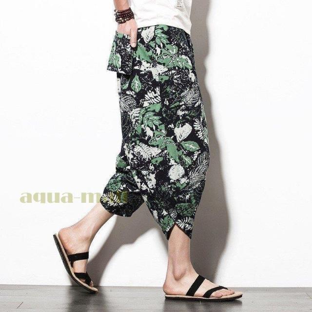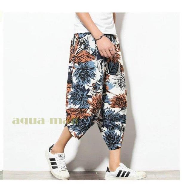 花柄サルエルパンツ メンズ サルエル エスニック ジョガーパンツ クロップド ダンス アジアン ゆったり