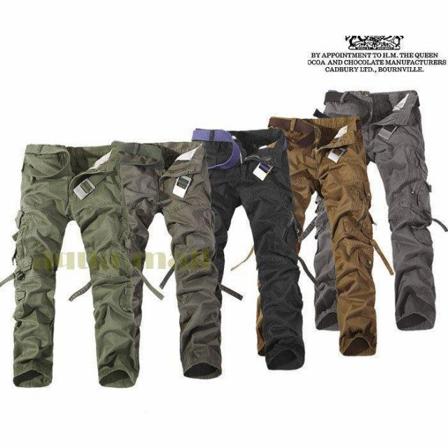 【】ストレッチ カーゴパンツ メンズ スリム ワークパンツ 作業着 レディース ミリタリーパンツ ストレート ブラック 黒 グリーン パンツ