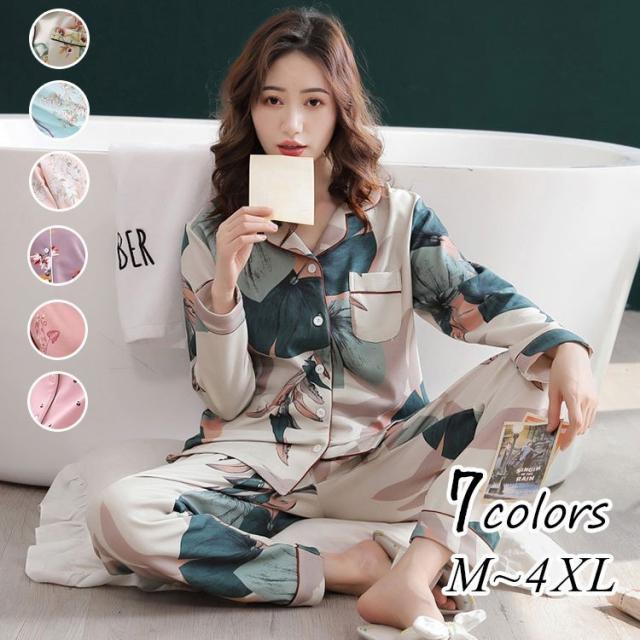 パジャマ レディース ルームウェア 秋冬 綿 前開き セットアップ 長袖 上下セット 大きいサイズ 可愛い ロングパンツ ゆったり 韓国風 寝巻き 部屋着 寝間着
