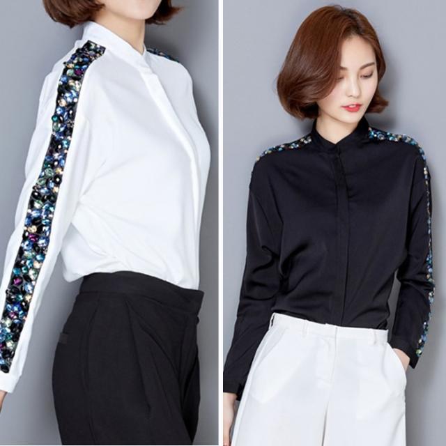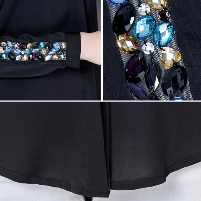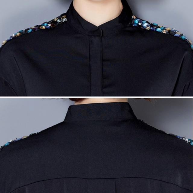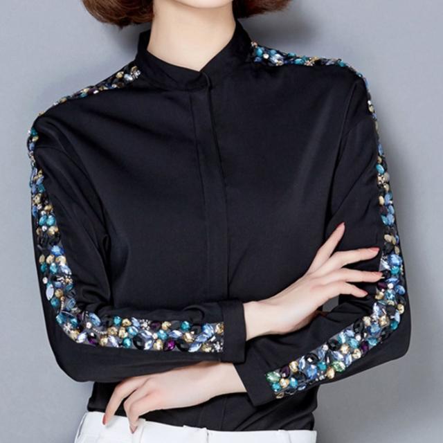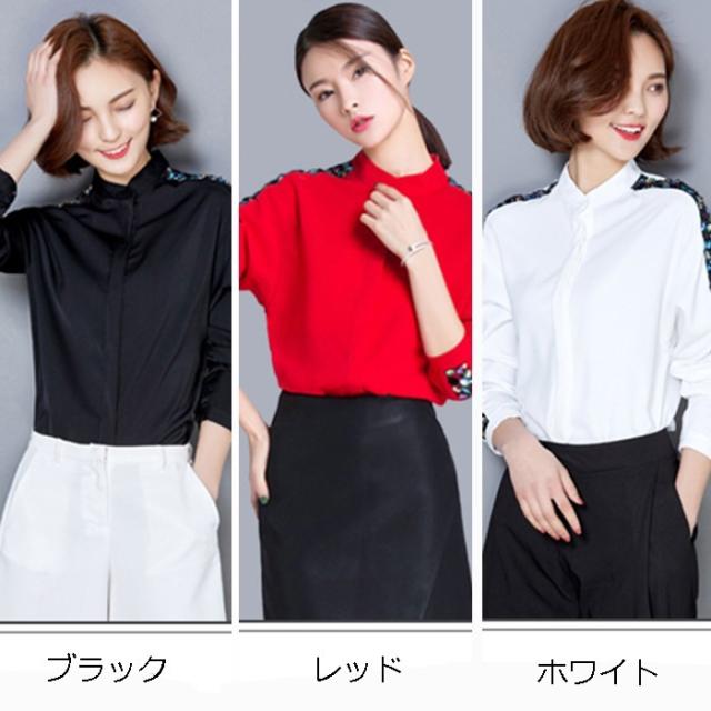 シフォンシャツビジュー付きレディーストップス春秋七分袖おしゃれサテン2次会かわいい春服卒業式入園式卒園式フォーマルパーティー無地カジ