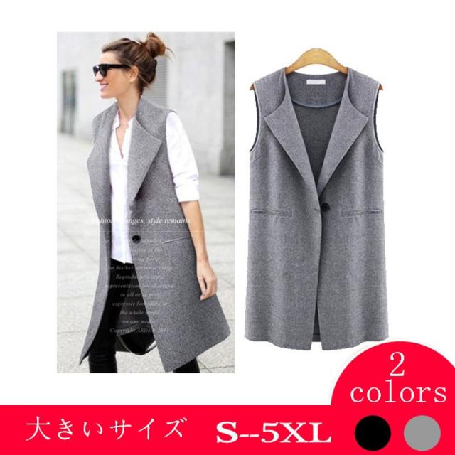 春秋新作 ベスト レディースベスト ジレ ロング丈 ノースリーブ 夏 20代 30代 40代 グレーブラック通勤 前開き 体型カバー 着痩せ 人気