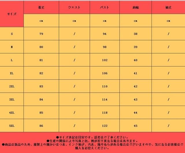 | サイズ | S M L XL 2XL 3XL 4XL 5XL |