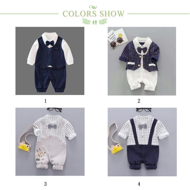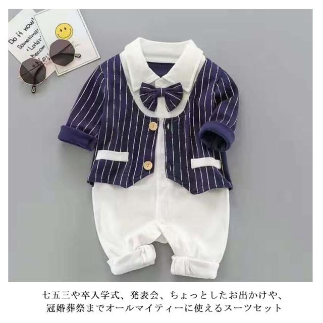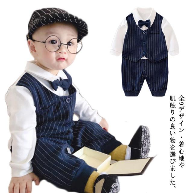 全9デザイン 子供服 男の子 ベビー服 子供スーツ フォーマル スーツ 子供 キッズ ハロウィン 発表会 入学式 入園式 キッズスーツ ベビースーツ カバーオール ロンパース 赤ちゃん 蝶ネクタイ付 長袖 タキシード風 送料無料 変装 卒園式 七五三 初節句 結婚式 写真 撮影 記念