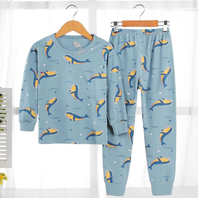 キッズ ルームウェア パジャマ 綿 男の子 女の子 ユニセックス トップス パンツ 上下セット 2点セット 長袖 部屋着 寝巻き 子供用 セットアップ シンプル ゆったり ウエストゴム調節 総柄 可愛い