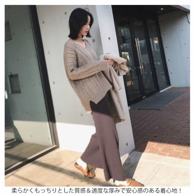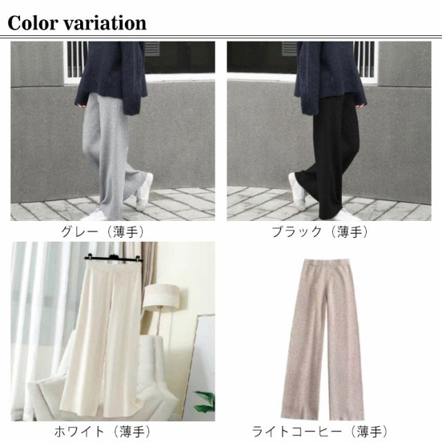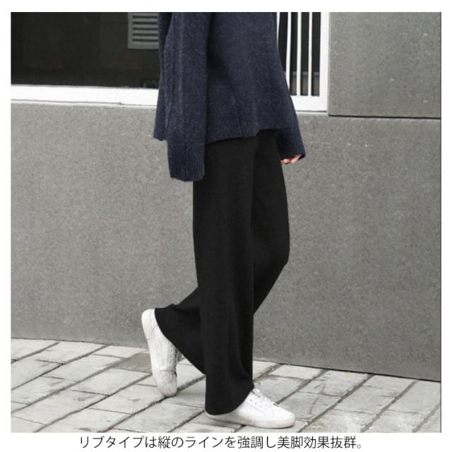 ニットパンツ レディース ワイドパンツ リブパンツ 秋冬 秋 冬 春 リブ リブニットパンツ ガウチョパンツ ウエストゴム 厚手 ストレート パンツ プリーツパンツ 大きいサイズ リブニット ロングパンツ 送料無料 リラックス