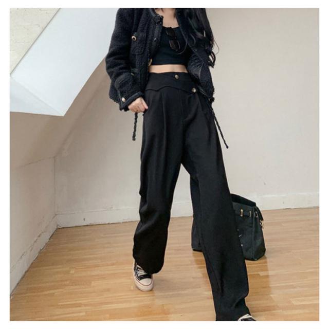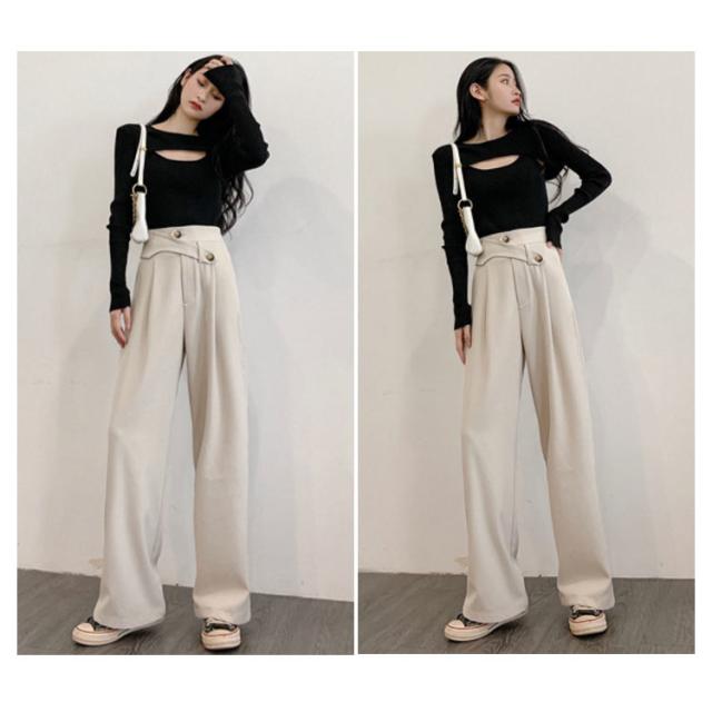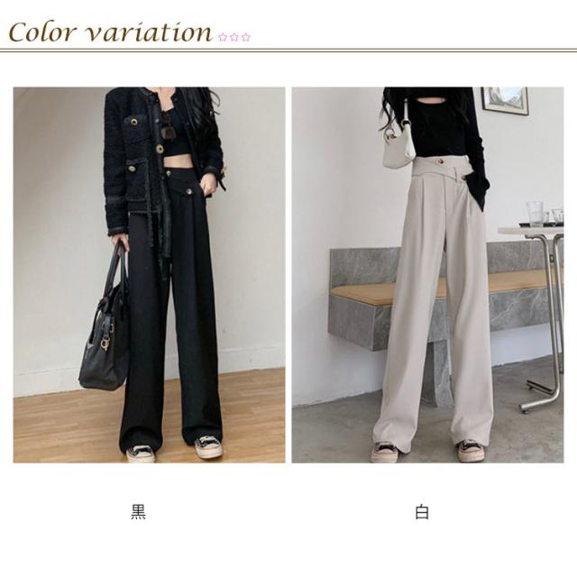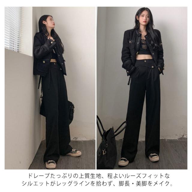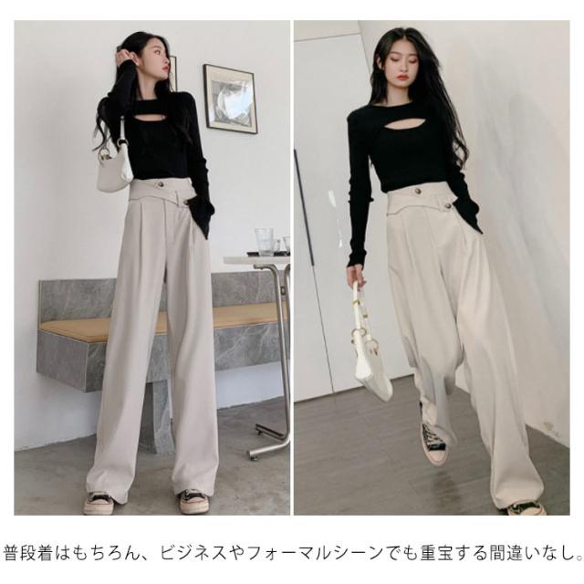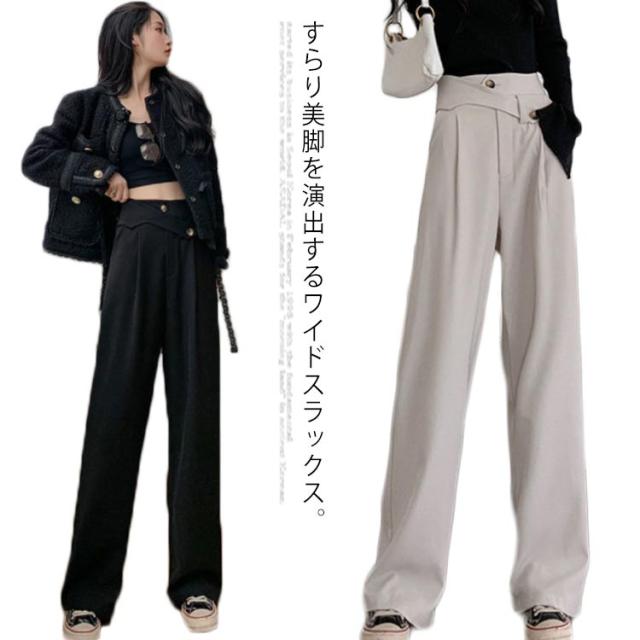 ワイドスラックス レディース ドレープたっぷりで高級感 スラックス ロングパンツ ガウチョパンツ ハイウエスト 春秋 服 無地 体型カバー 着痩せ ストレート