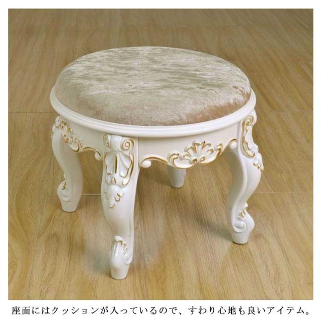 | 女性の方の化粧台の椅子に、玄関のちょっとしたスペースに腰掛ける用の椅子に、またはお子様の教育机の椅子など、用途は様々です! サイズがコンパクトな為移動の持ち運びも簡単! 座面にはクッションが入っているので、すわり心地も良いアイテム。 なんとなくノルディック柄をイメージしてしまう奢華なデザインのスツールです。 円形で角がないので、お子様がいるご家庭でも安心してお使いいただけます。 いすの表と4つの脚をネジで一緒に固定するだけで組み立てることができます。とても簡単です!(ツール付属あり) | |