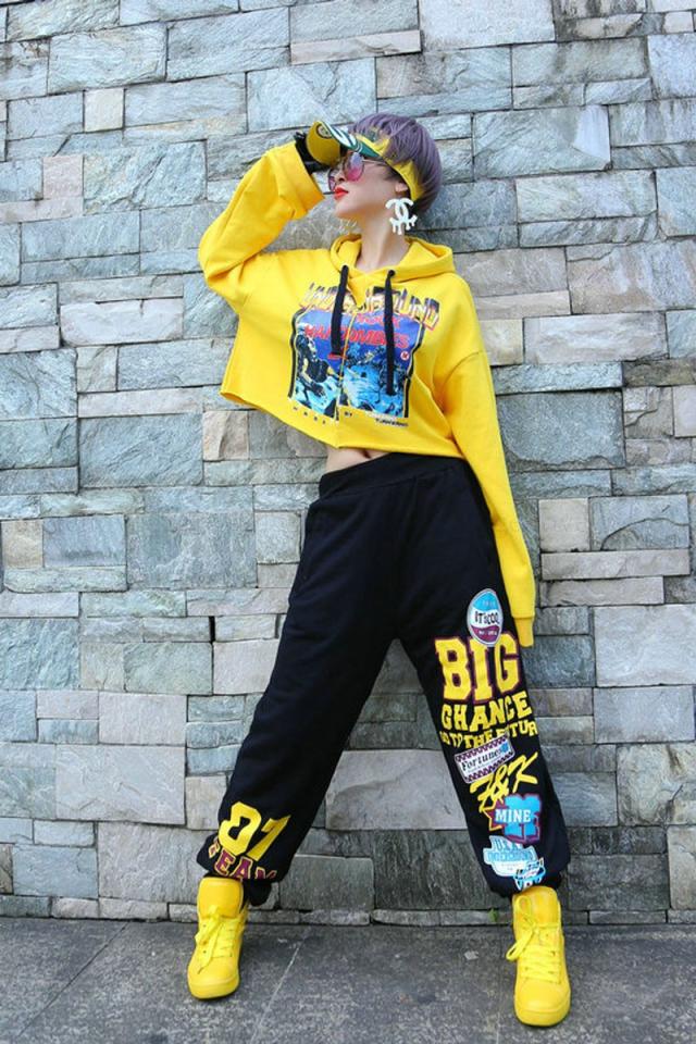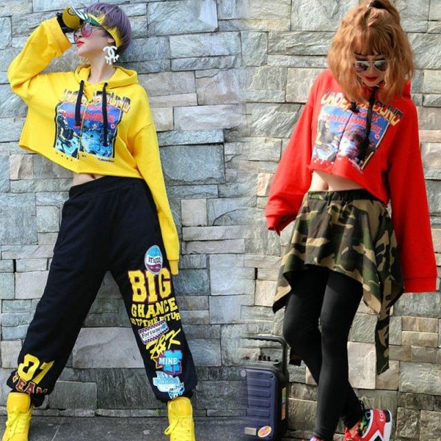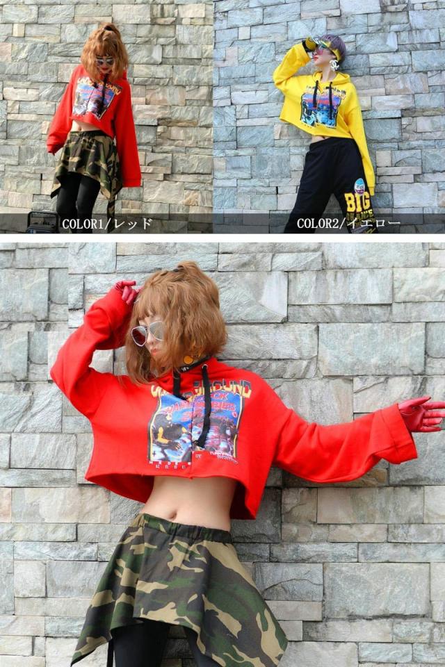 ダンス衣装 ダンス 衣装 レッスン着 ダンストップス 長袖パーカー ショート丈 パーカー フード付 パーカー ヒップホップ トップス セクシー 赤 黄色