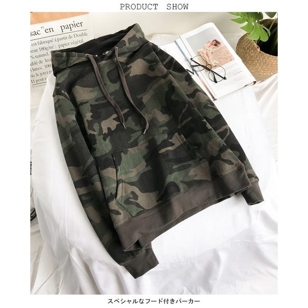 【セール】パーカー レディース プルパーカー フード付き ライトアウター 迷彩柄 カモフラージュ柄 マフポケット 個性的 カジュアル ルー