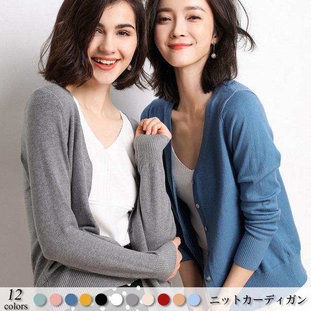 ニットカーディガン レディース 春秋 おしゃれ 長袖 ニットカーディガン無地 vネック 通勤 冷房対策 UVカット ニットカーディガン オシャレ 12色
