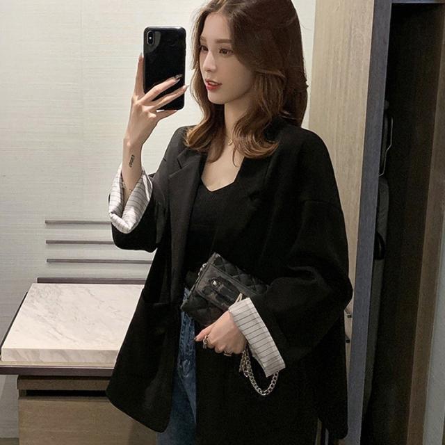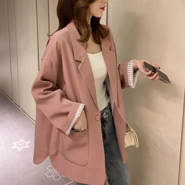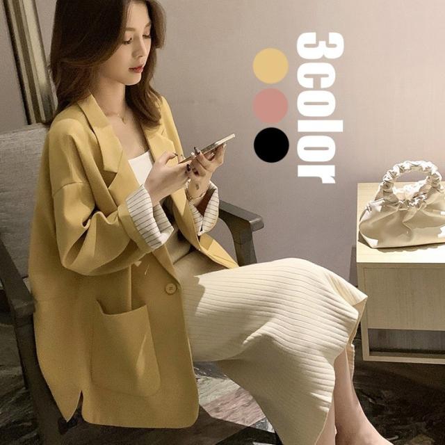ブレザー スーツ レディース きれいめ 春秋 長袖 ゆったり オフィス カジュアル 大きいサイズ 韓国風 通勤 OL オシャレ ジャケット ロング丈 3色