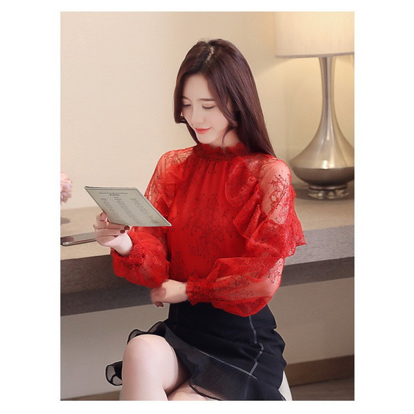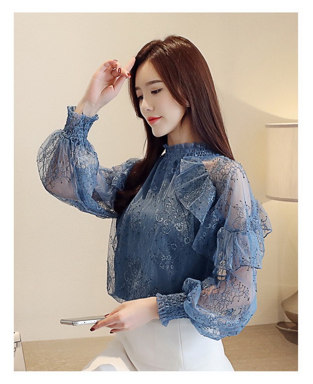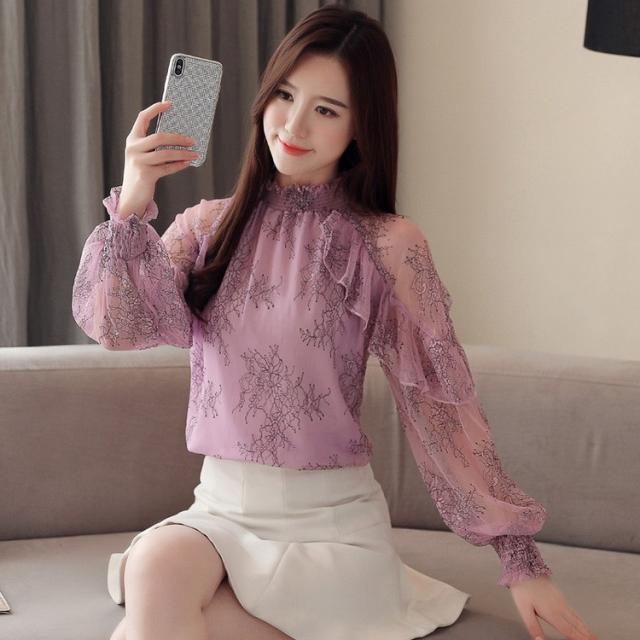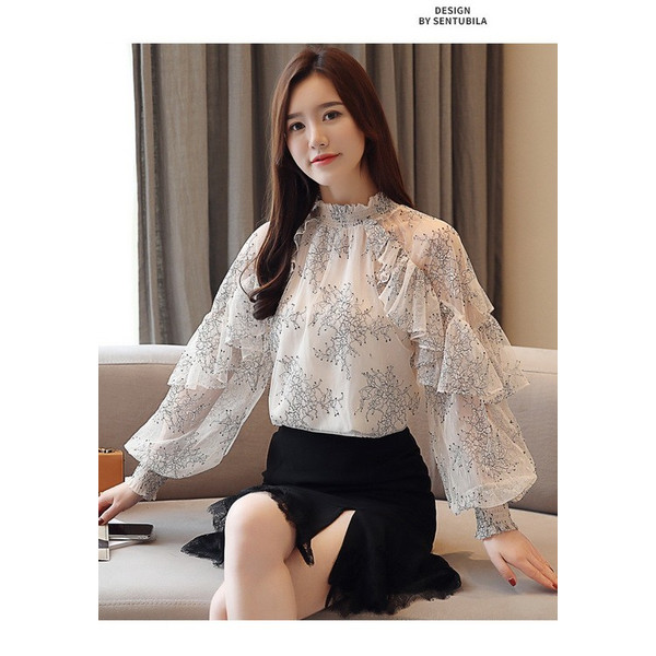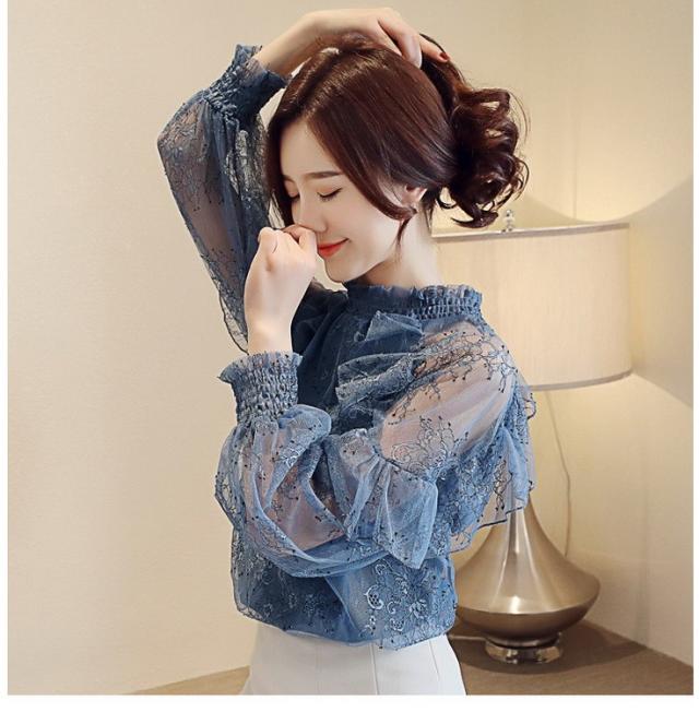 ブラウス レディース きれいめ 40代 春秋 上品 ブラウス 花刺繍シフォントップス 長袖 フレアボトルネック オシャレ 6色 韓国風 大きいサイズ シャツ30代 50代