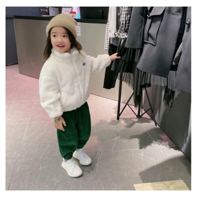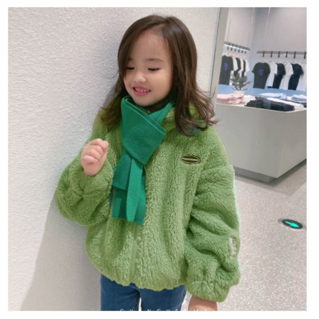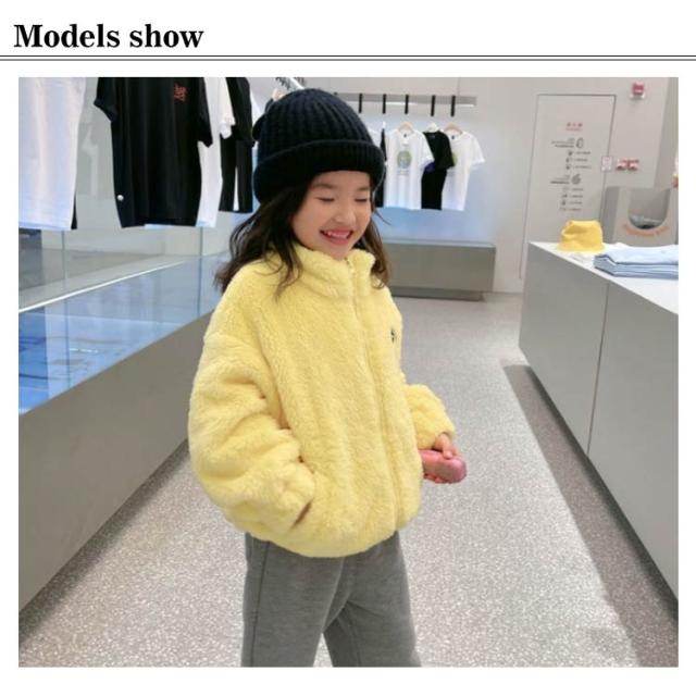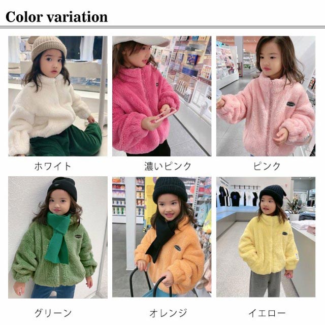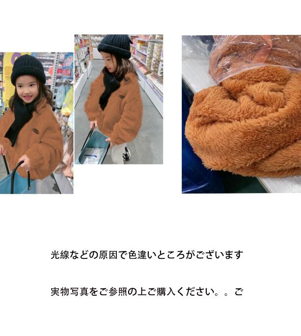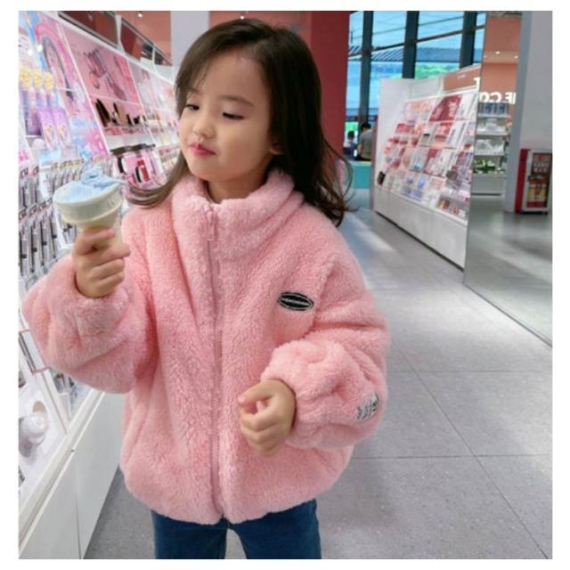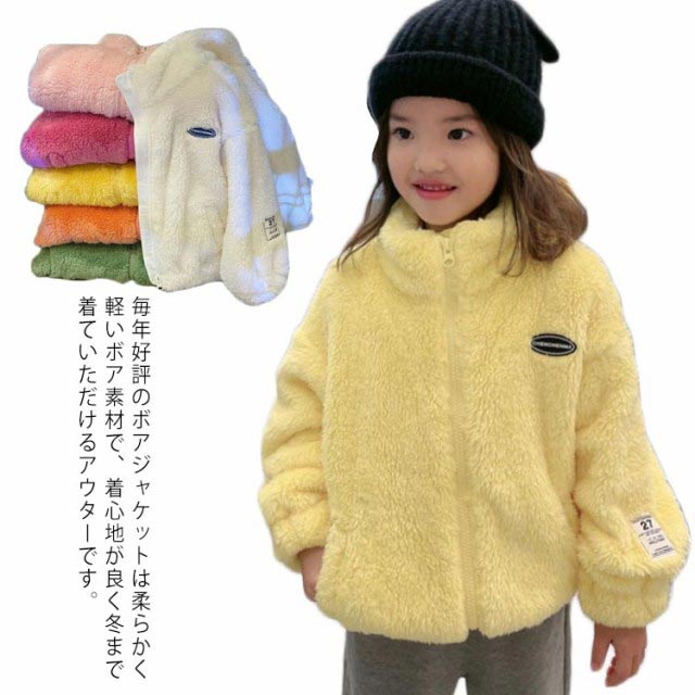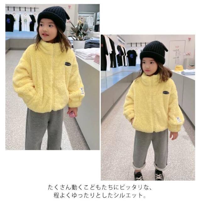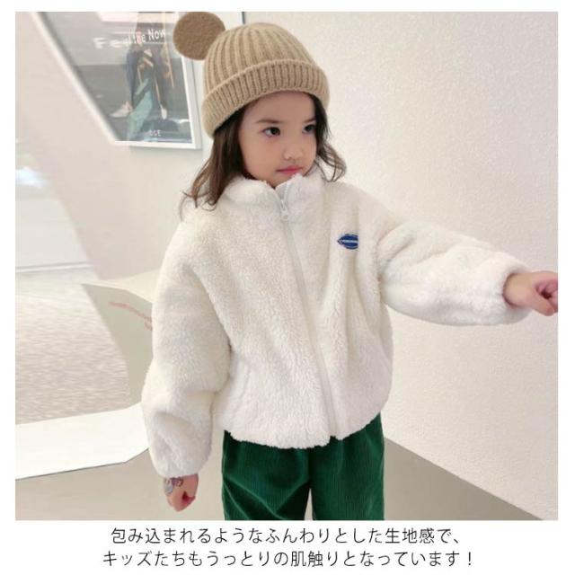 【送料無料】キッズ ボアジャケット アウター ファー 子供服 赤ちゃん ベビー モコモコ 長袖 厚手 男の子 女の子 ボアフリースジャケット ハイネック ワンポイント コート 羽織り 無地 保温 防寒 あったか 秋冬 韓国 80 90 100〜140 150cm かわいい