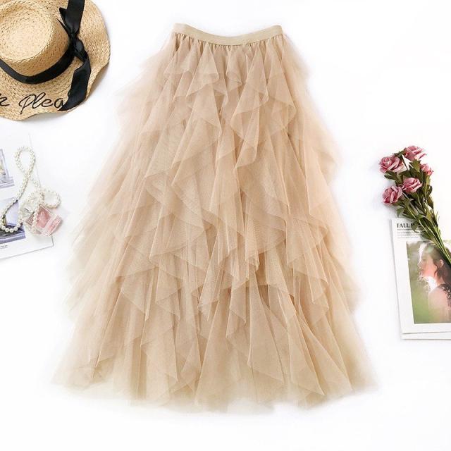 チュールスカート ロングスカート レディース スカート フレアスカート 無地 不規則 レイヤード おしゃれ パーティー イベント可愛い