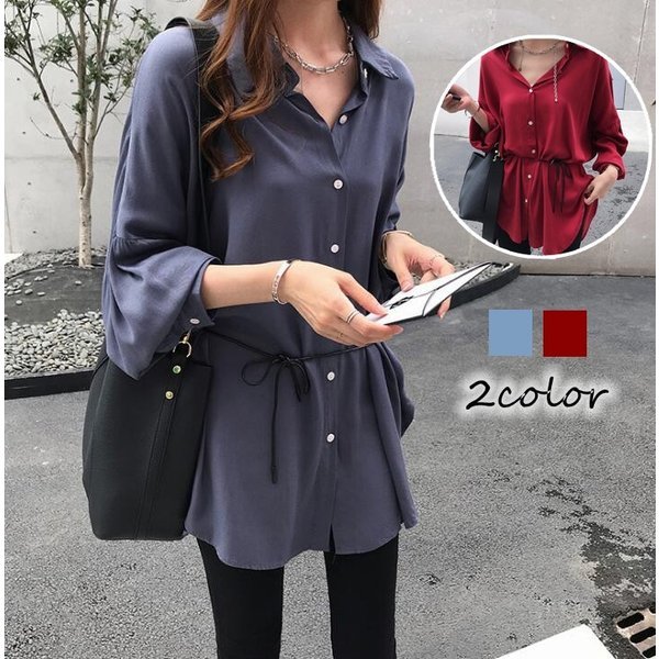 【セール】ブラウス ロングシャツ Vネック スリット レディース トップス シャツ 長袖 春服 春夏 代引不可