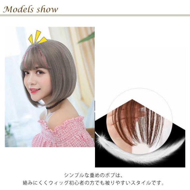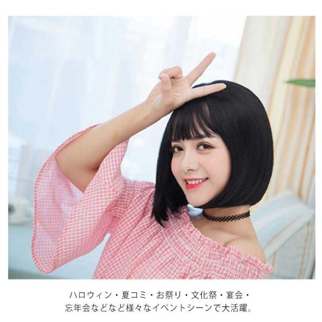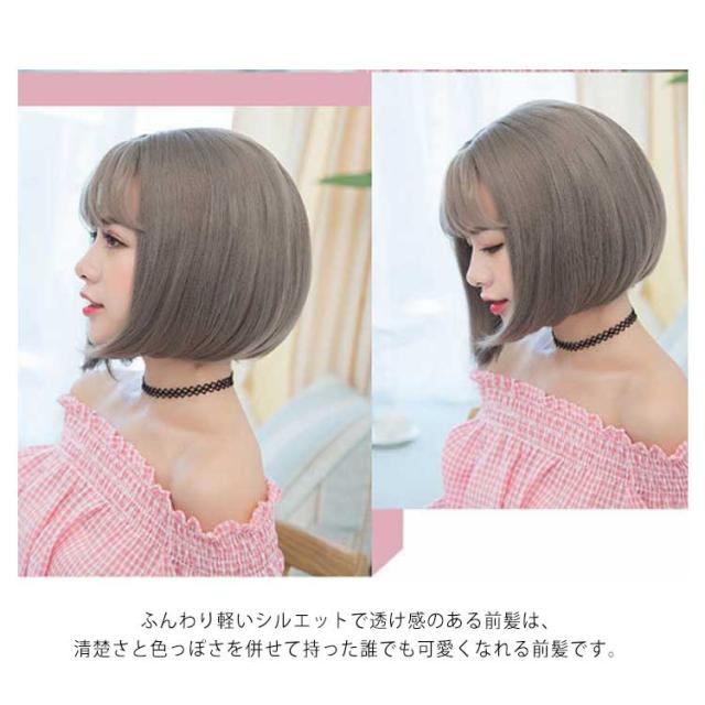 | キュートなショットボブ! シンプルな重めのボブは、絡みにくくウィッグ初心者の方でも被りやすいスタイルです。 ふんわり軽いシルエットで透け感のある前髪は、清楚さと色っぽさを併せて持った誰でも可愛くなれる前髪です。シースルーバングで清楚可愛さがUP! 形状記憶で崩れにくく、肩より少し上の長さはアレンジなども楽しめる絶妙な長さとなっております。 ハロウィン・夏コミ・お祭り・文化祭・宴会・忘年会などなど様々なイベントシーンで大活躍。 | |