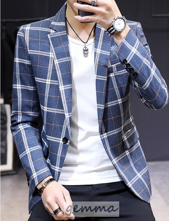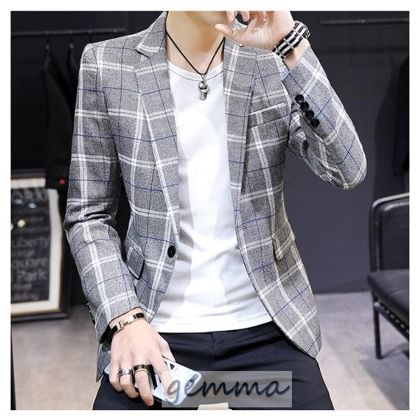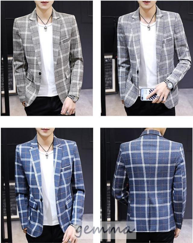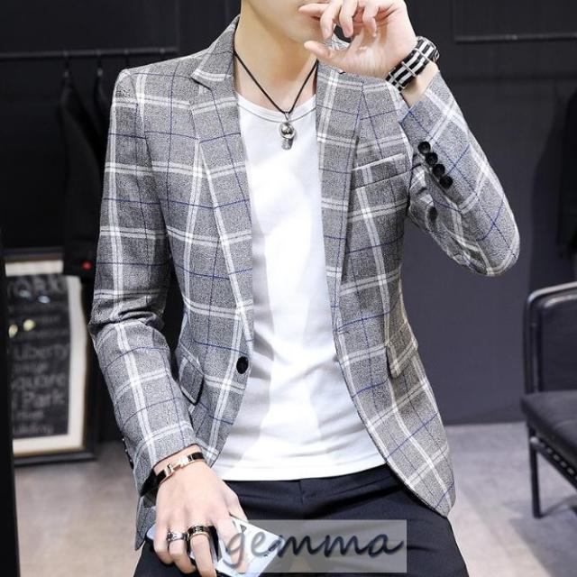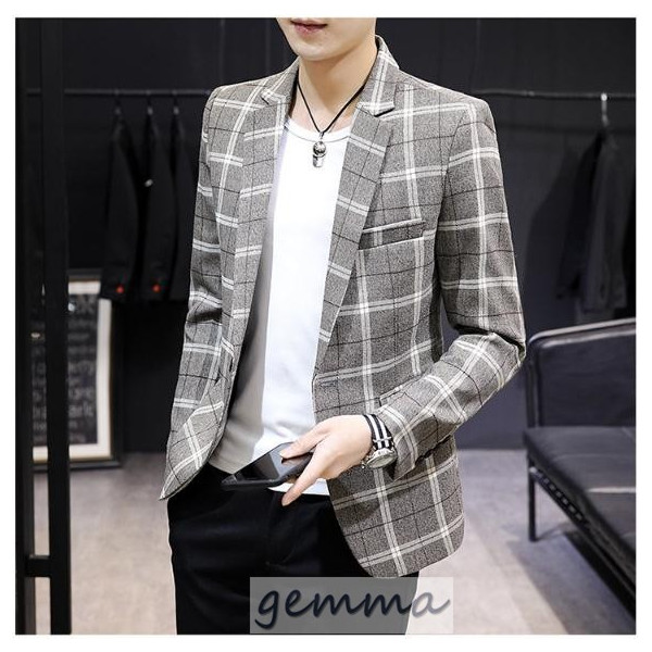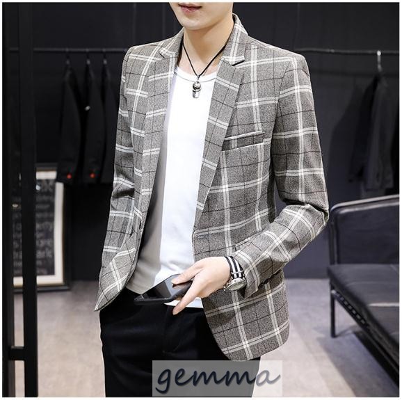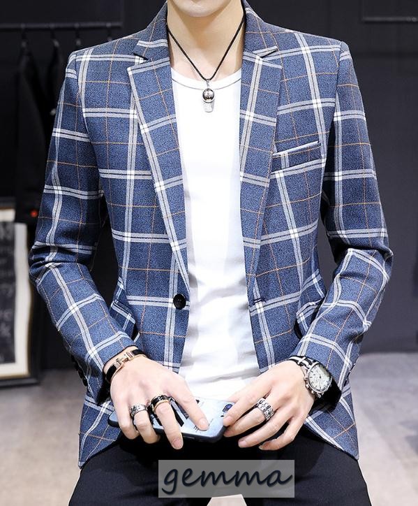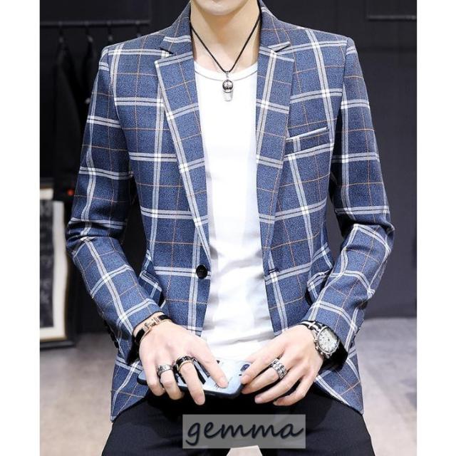 テーラードジャケット メンズ チェック柄 格子縞 ブレザー ビジネススーツ 通勤 OL ジャケット 春物 アウター 結婚式 カジュアルスーツ
