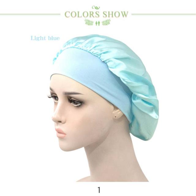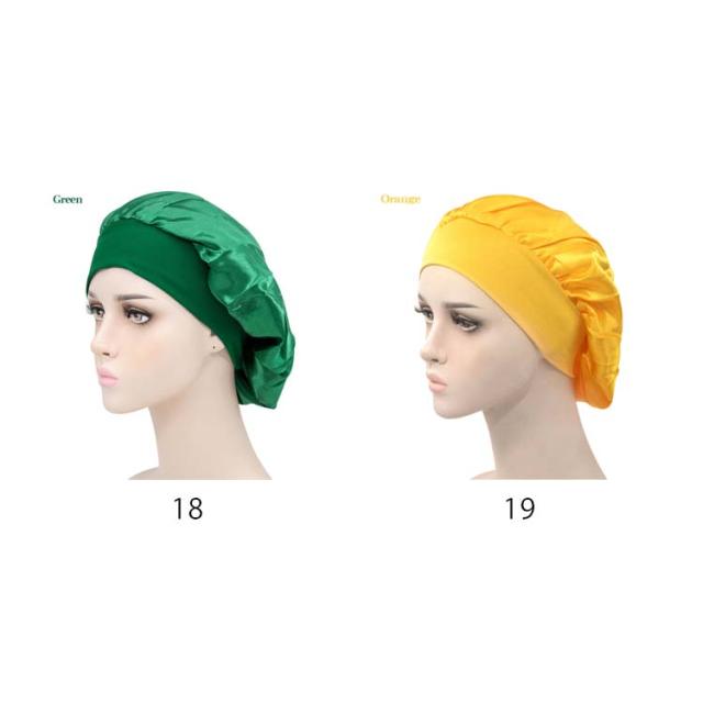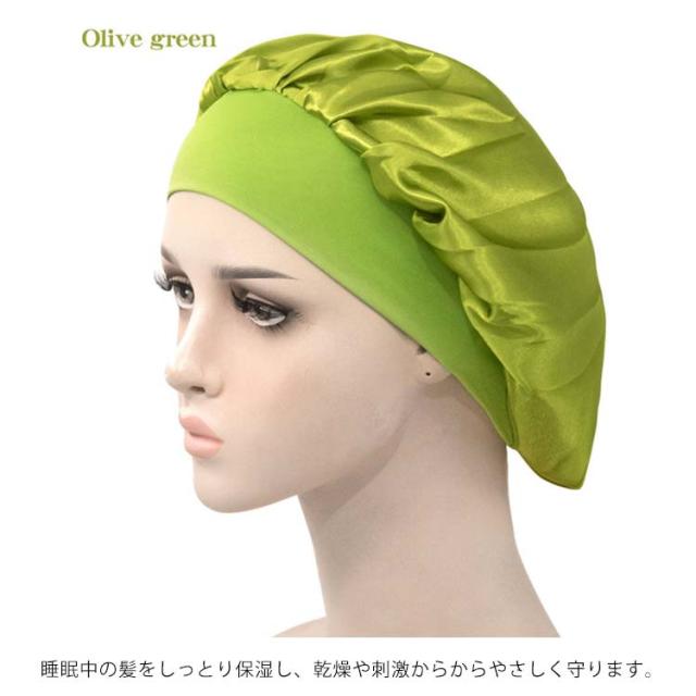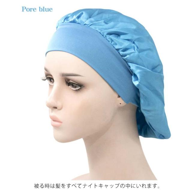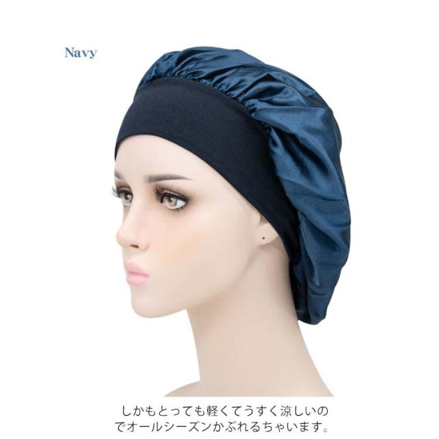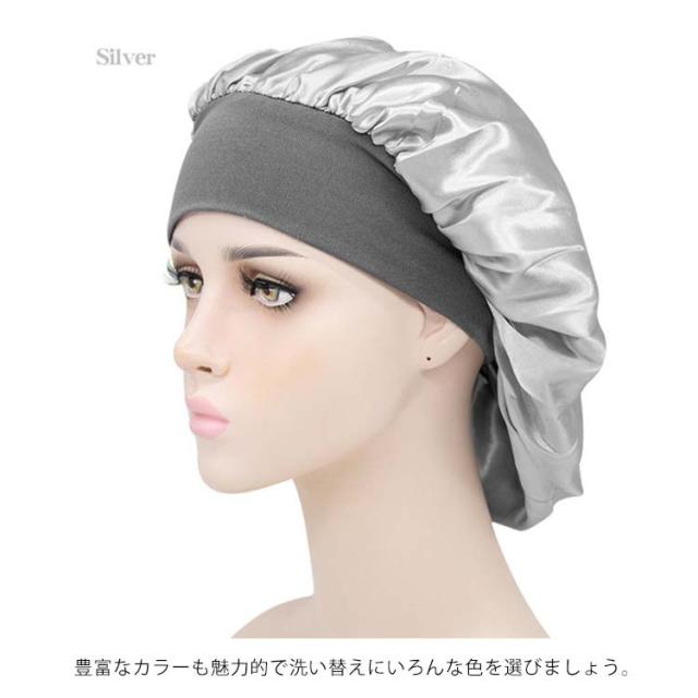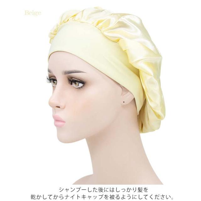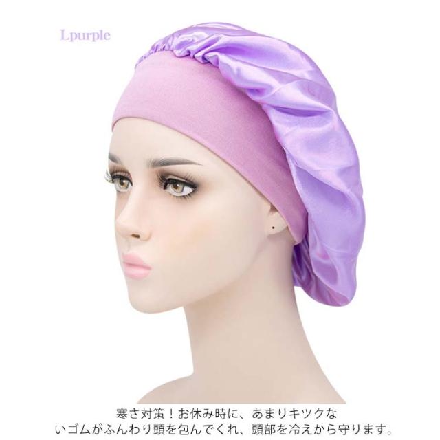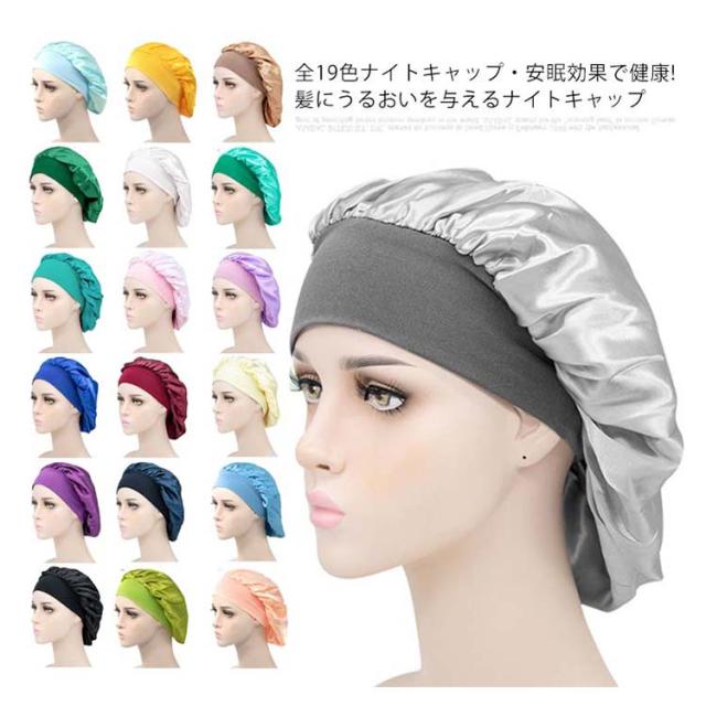 | 全19色ナイトキャップ・安眠効果で健康! 髪にうるおいを与えるナイトキャップ 睡眠中の髪をしっとり保湿し、乾燥や刺激からからやさしく守ります。 気になる髪の匂いを防ぎます。寝ぐせ防止にも効果があります。 被る時は髪をすべてナイトキャップの中にいれます。 シャンプーした後にはしっかり髪を乾かしてからナイトキャップを被るようにしてください。 寒さ対策!お休み時に、あまりキツクないゴムがふんわり頭を包んでくれ、頭部を冷えから守ります。 就寝中の髪の毛のもつれを防ぐのにも効果的です。 寝癖悩み解消!アレルギーの原因ともなるホコリを寄せ付けにくく抗菌性にも優れているので、衛生的にも安心してお使いいただけます。 豊富なカラーも魅力的で洗い替えにいろんな色を選びましょう。 しかもとっても軽くてうすく涼しいのでオールシーズンかぶれるちゃいます。 | |