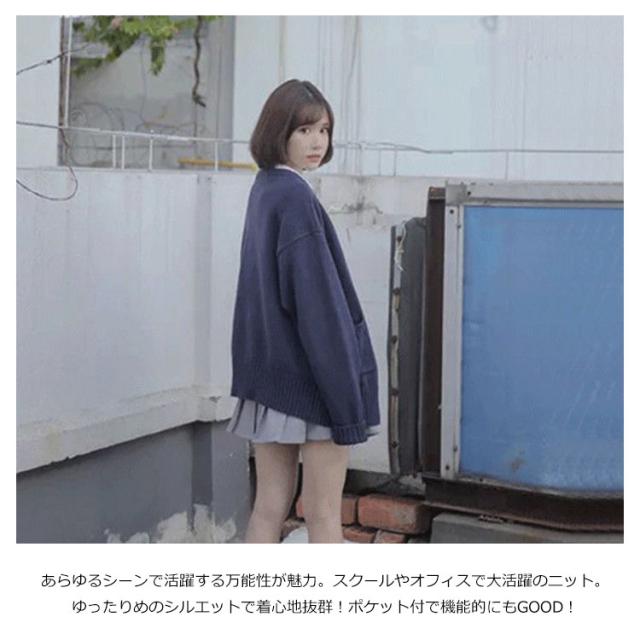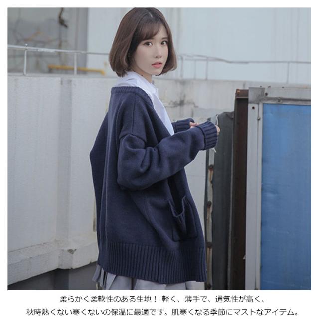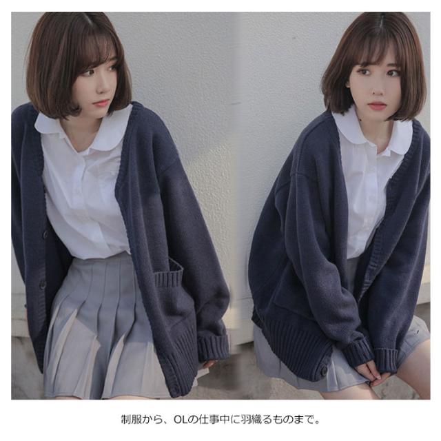 スクールカーディガン 綿 無地 ゆったり Vネック ニット スクールセーター ニットカーディガン 大きいサイズ 制服 学生服 女子 高校生 中学生 通学 秋冬 春 紺