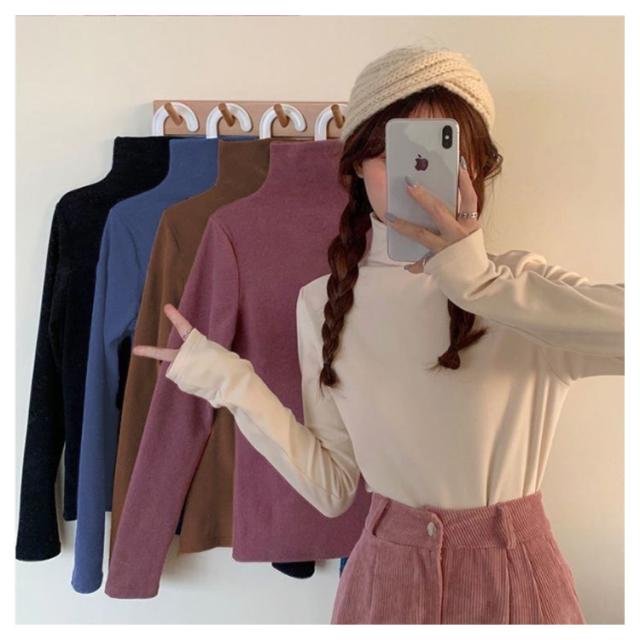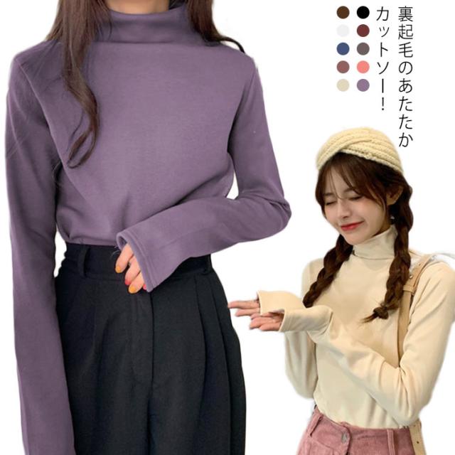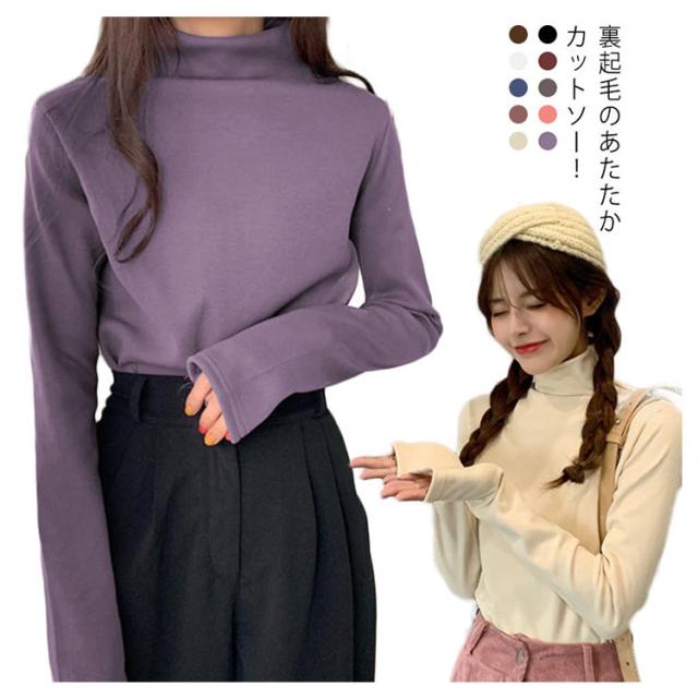 送料無料 カットソー 裏起毛 インナー レディース Tシャツ トップス 長袖 あたたか カットソー タートルネック 厚手 ハイネック 無地 防寒 暖かい 長袖 インナー プルオーバー ルームウエア
