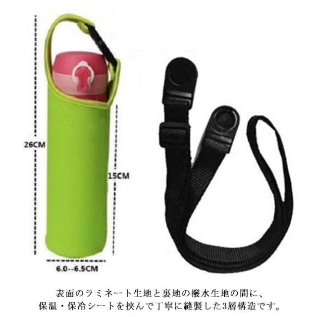 | 全3サイズ・8色ストラップ付き水筒カバー登場! 安心して毎日お使い頂ける、徹底した品質管理。 保冷保温素材だからオールシーズン活躍! シンプルでおしゃれな無地デザイン、お気に入りのマイボトルをずっときれいに 耐久性と耐熱性のある素材でぴったりフィットの水筒カバーでしっかりホールド。水筒をキズから守ります。 季節に合わせて飲みたい飲み物を持ち運べます。 専用ストラップ付で、カバン、ウエストなどにぶら下げられて便利! 登山などにも大活躍です。 ペットボトルはもちろん、水筒・ステンレスボトルも収納できます。 ネオプレン素材だから保温性も抜群。 表面のラミネート生地と裏地の撥水生地の間に、保温・保冷シートを挟んで丁寧に縫製した3層構造です。 お子さまが少々やんちゃに扱っても壊れにくく設計しました。 | |