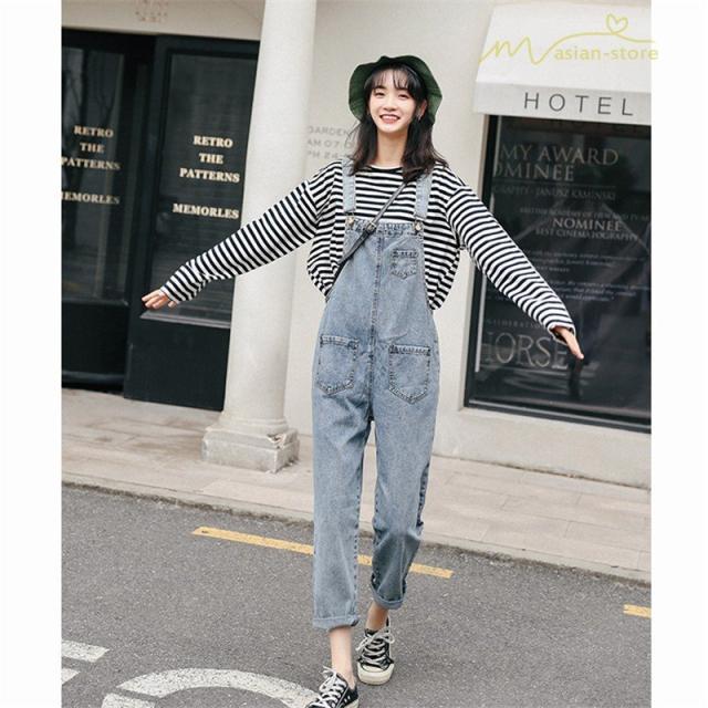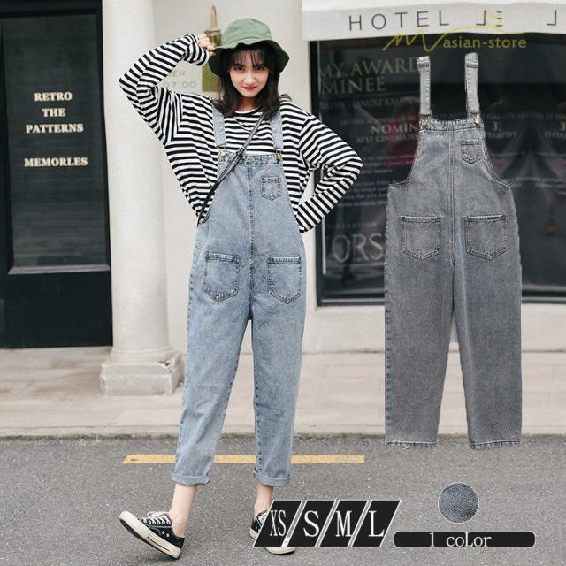 オーバーオール サロペット デニム オールインワン レディース 春コーデ 2020新制作 無地 ストレートパンツ ゆったり カジュアルパンツ ジーンズ 韓国風