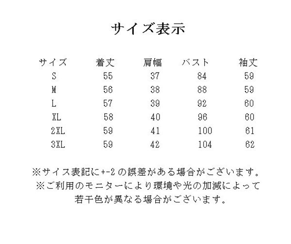 | サイズ | S M L XL 2XL 3XL |