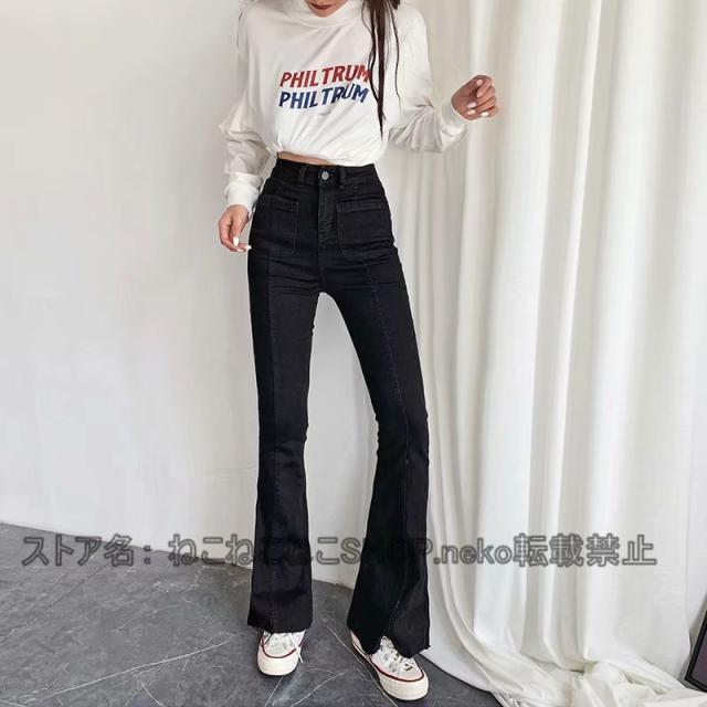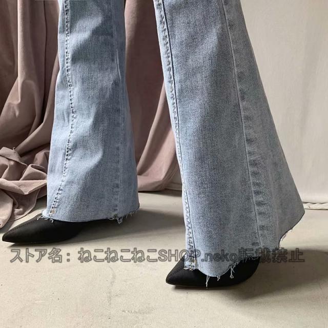 ジーパン デニムパンツ ジーンズ ダメージ加工 ワイドパンツ ガウチョパンツ ロング丈 ボトムス レディース ストレッチ スリムパンツ 個性的 大きいサイズあり