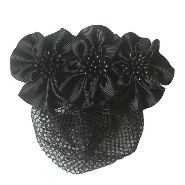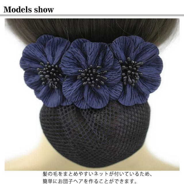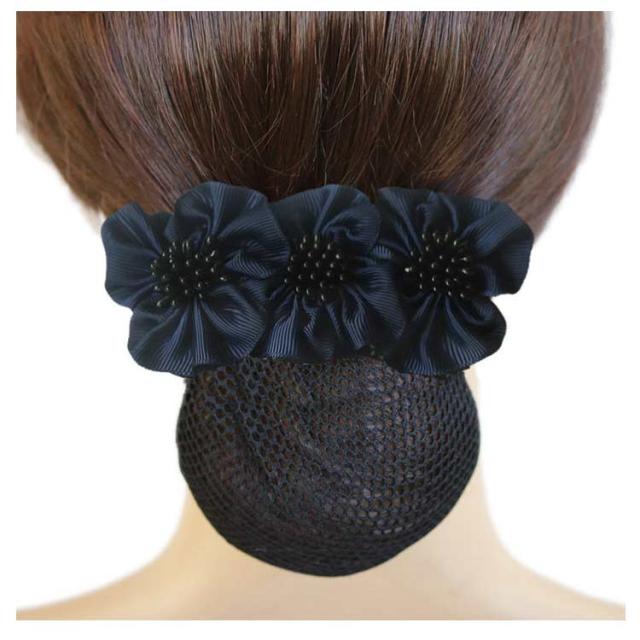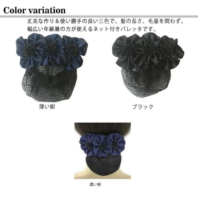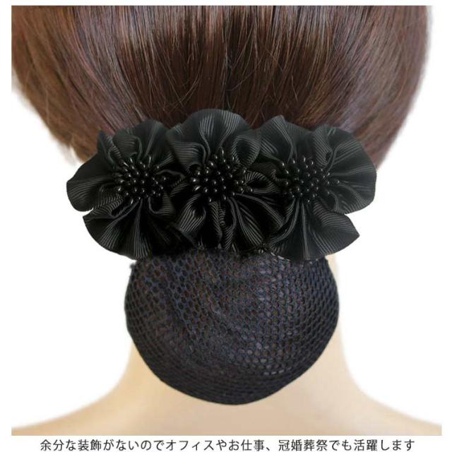 【送料無料】フォーマル ネット付き バレッタ リボン 花 小さめ 結婚式 シンプル 就活 オフィス 会社 仕事 法事 冠婚葬祭 お団子ネット リボン付き ヘアピン シニヨンネット ヘアアクセサリー シニヨンバレッタ