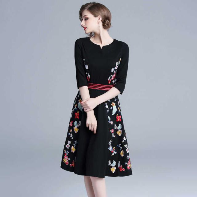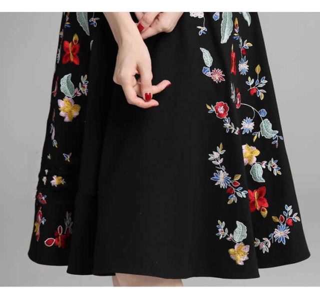 結婚式 ワンピース パーティードレス ミニ丈 膝丈 フォーマル ワンピース 花柄 刺繍 袖あり 二次会 お呼ばれ 花嫁 大人 大きいサイズ ブラック 20代 30代 40代