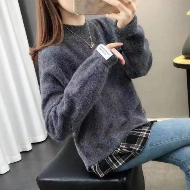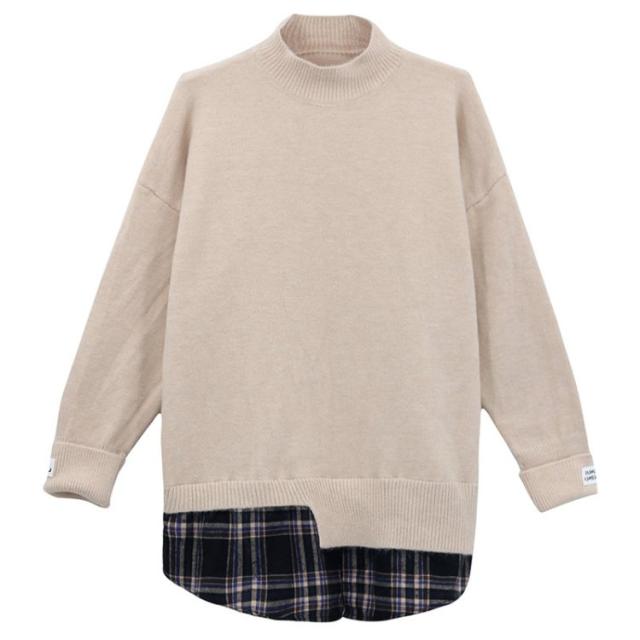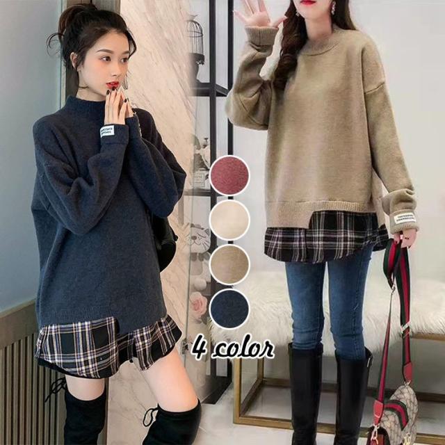 ニットセーター レディース 秋冬 ニットソー 長袖 切り替え セータートップス チェック ニットセーター ゆったり ニット プレゼント韓国風 大人可愛い 着痩せ