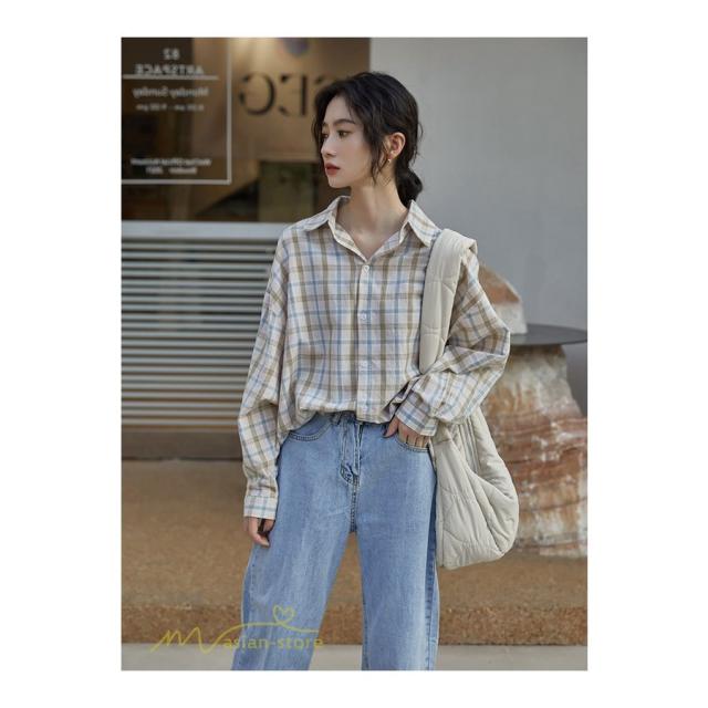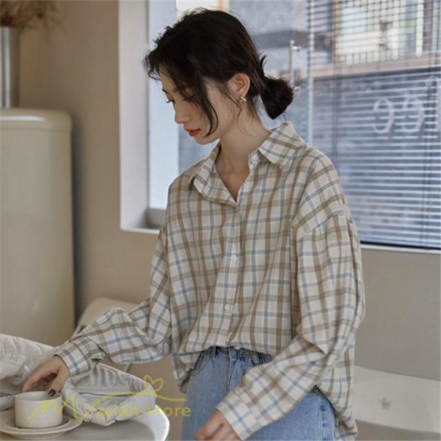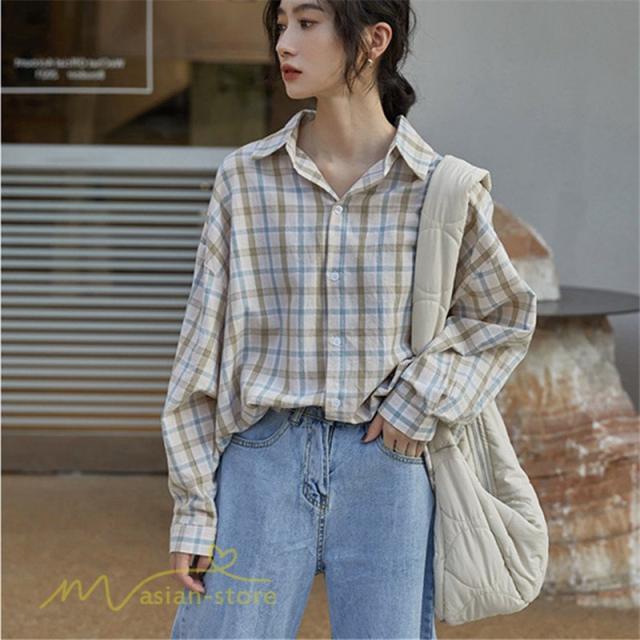 ワイドシャツ ゆったり レディース チェック柄 カジュアルシャツ フリーサイズ 秋服 フォール きれいめ トップス シャツ 長袖シャツ 定番 長袖 きれいめ 日常感