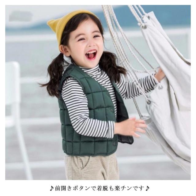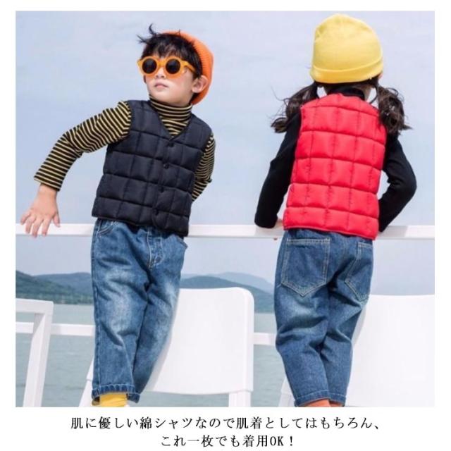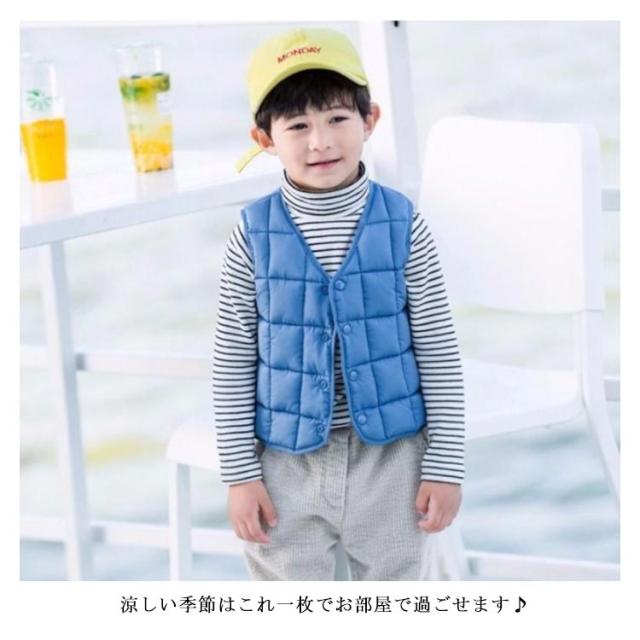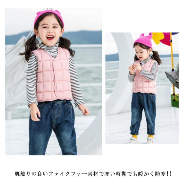 | 子供用ベスト全6サイズ・7色・送料無料! 動き回る小さなお子様にもおすすめ! ♪前開きボタンで着脱も楽チンです♪ パッと目をひくデザインで人気者に♪ 涼しい季節はこれ一枚でお部屋で過ごせます♪ あったかなダウンベストは毎年の冬定番! 肌触りの良いフェイクファー素材で寒い時期でも暖かく防寒!! 寒気から大切なお子様を守る◎ダウンよりずっとコスパが良いのも嬉しい♪ 肌に優しい綿シャツなので肌着としてはもちろん、これ一枚でも着用OK! お部屋着なのにとってもオシャレで、それでいて肌着のように着心地がよくて最適に過ごせます◎ 出産祝いや贈り物としても大変喜ばれるアイテムです! | |