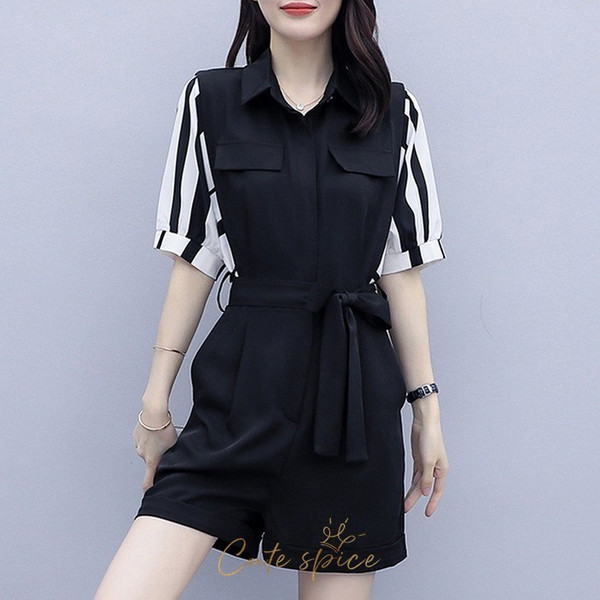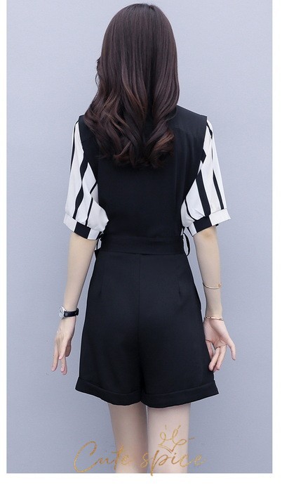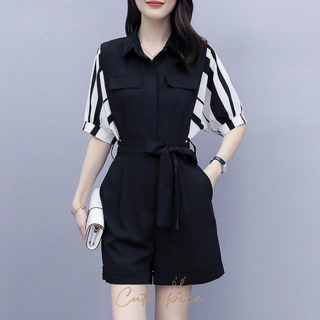 サロペット オーバーオール レディース 40代 春夏新作 ショート丈 ワイドパンツ 切り替え ストライプ柄 半袖 ボトムス ゆったり オシャレ通勤 カジュアル 30代