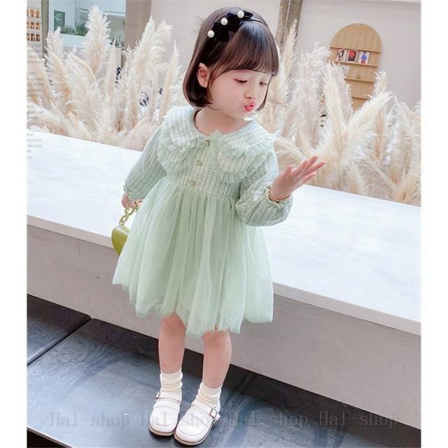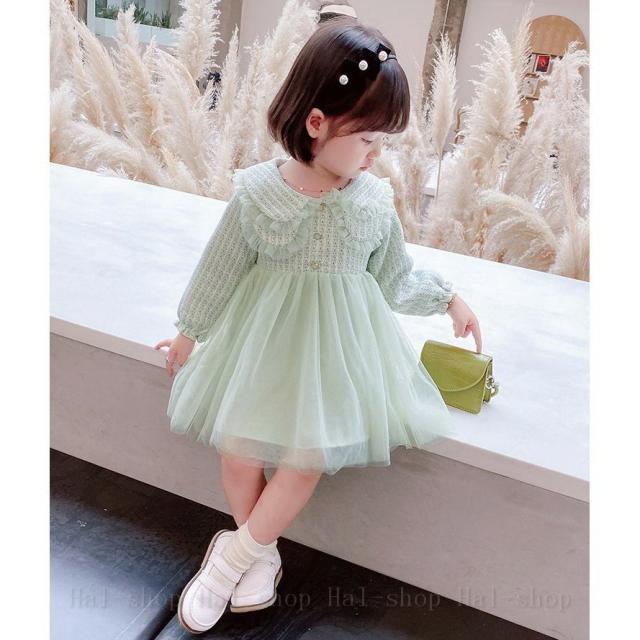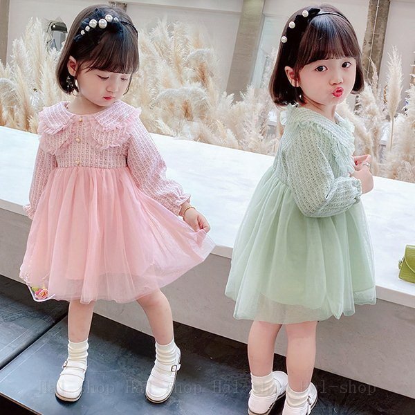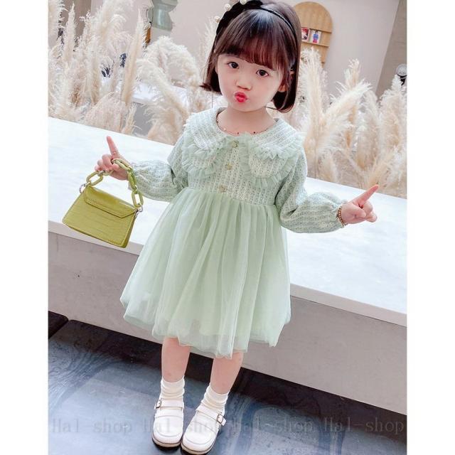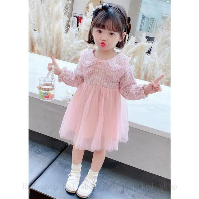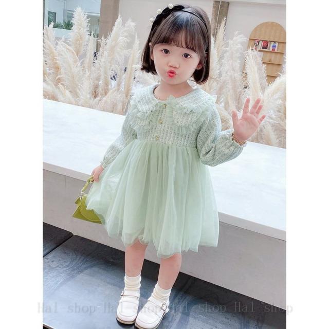 ワンピース キッズ 子供服 女の子 チュール 折り襟 春服 韓国子供服 子供ドレス dress 子ども服 ベビー服 お姫様 おしゃれ 可愛い カジュアル