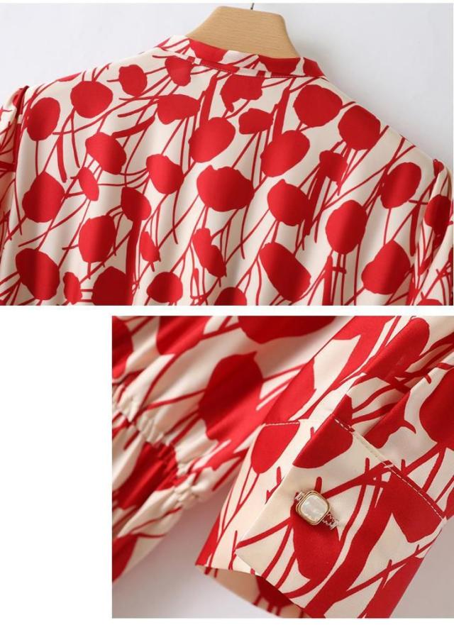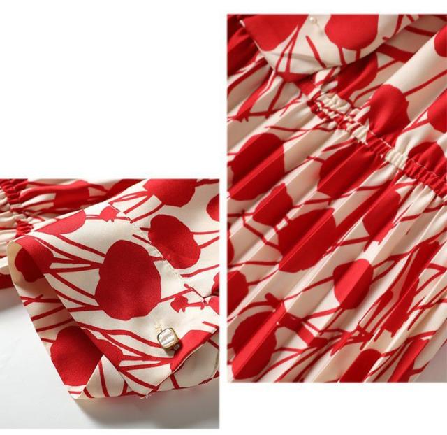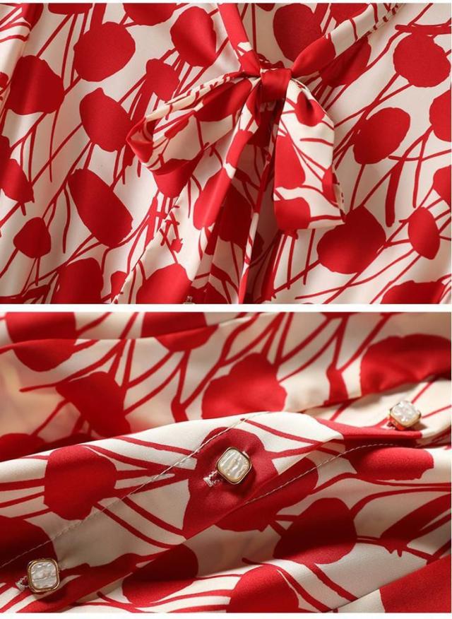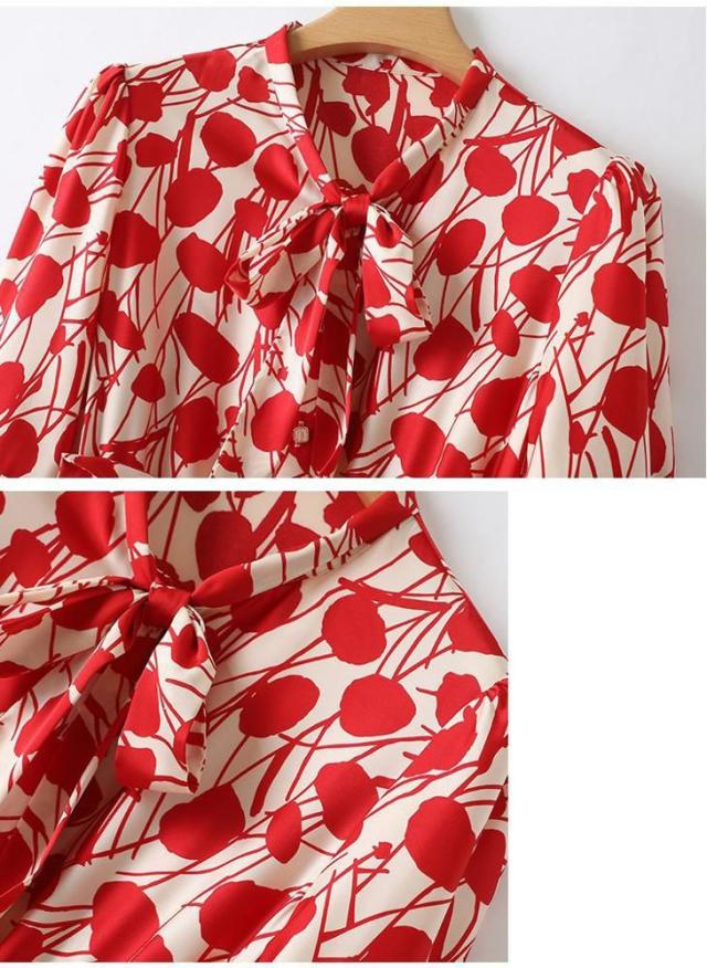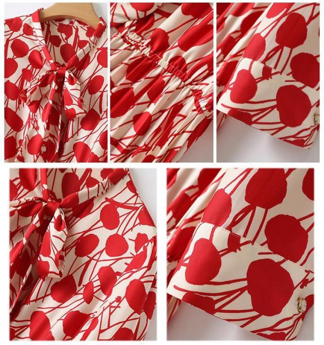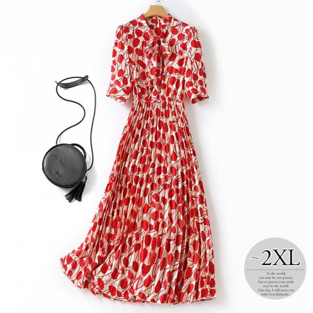 ワンピース プリント柄 ボウタイリボン ウエスト切替 ロマンティック ふんわり フェミニン デート リゾート 休日スタイル お出かけ 美人