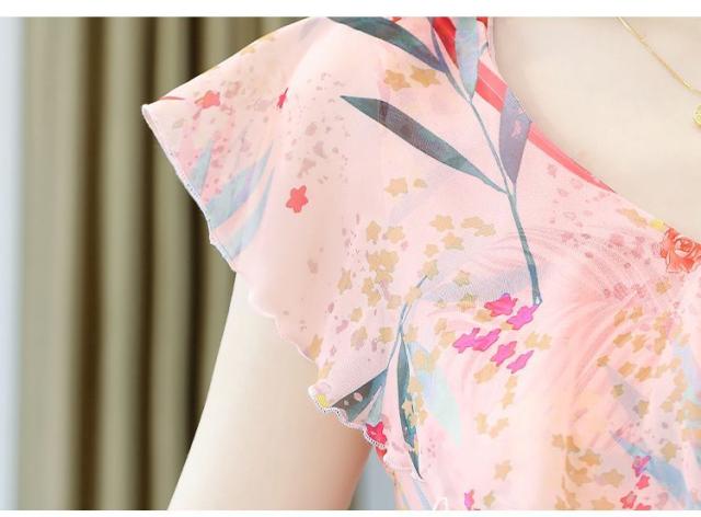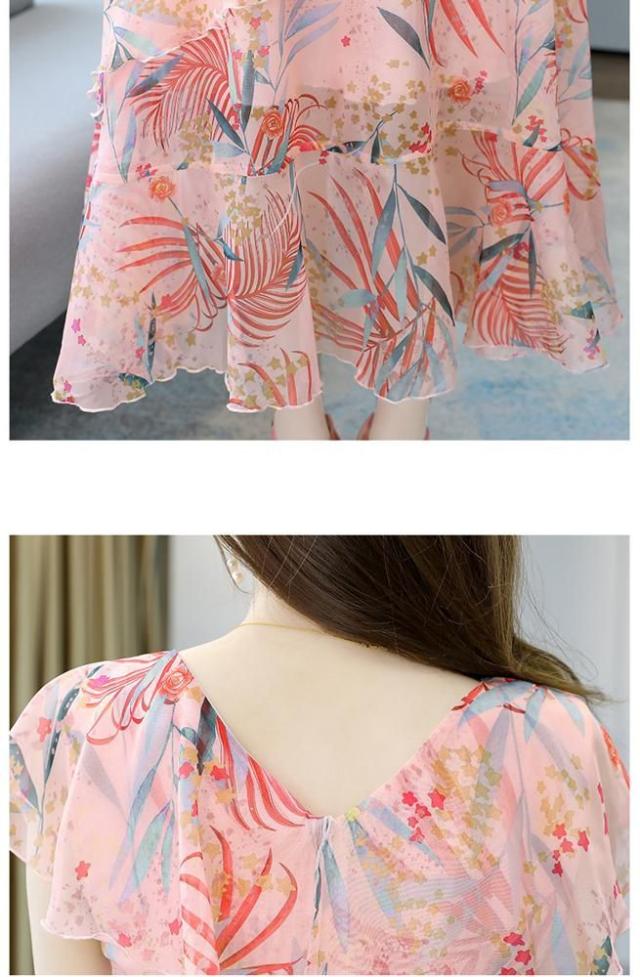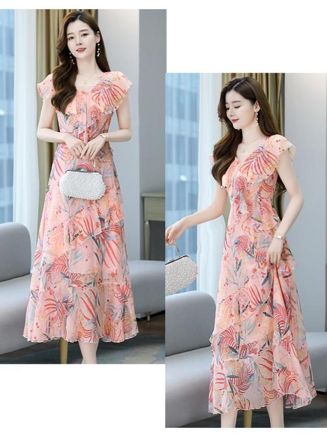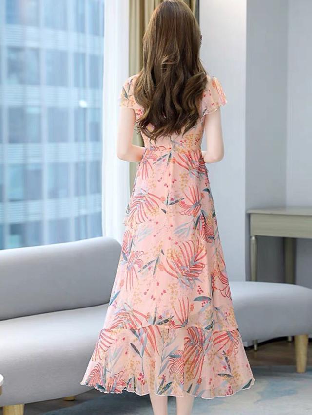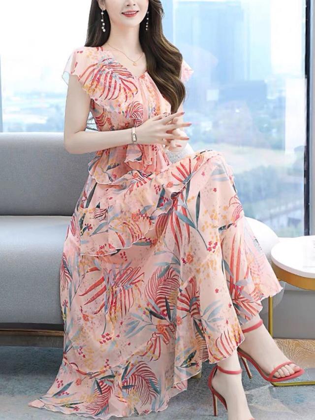 ワンピース ボタニカル柄 裾フリル レース 透け感 大きめ襟 フリル ロング丈ワンピ ロマンティック かわいい ドライブ ガーリー フェミニン
