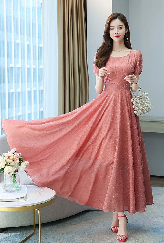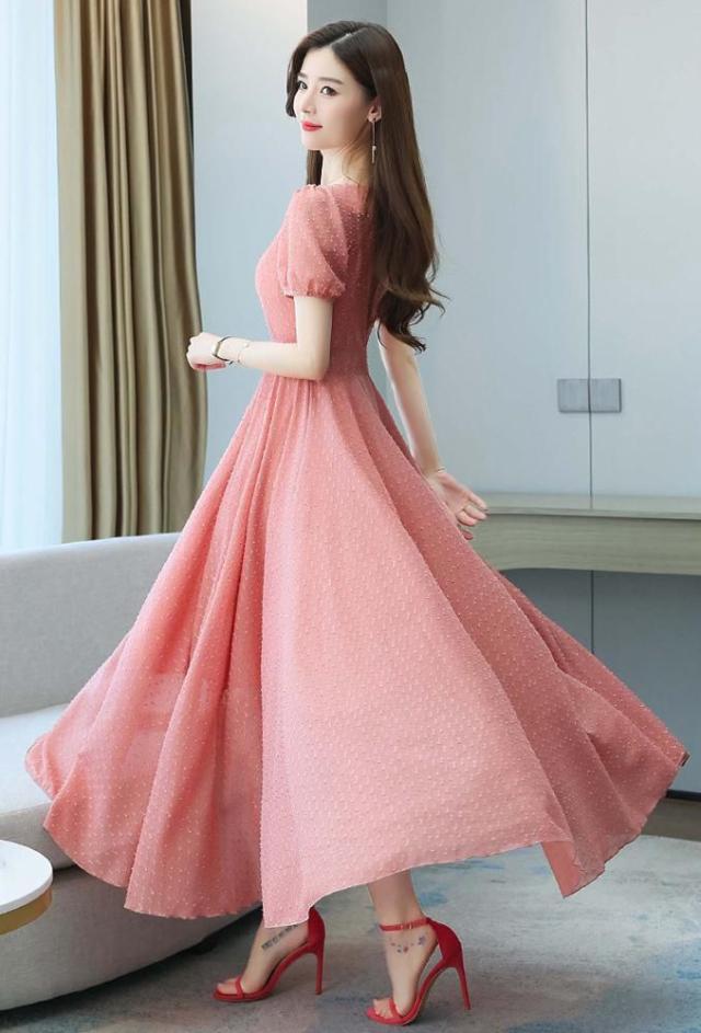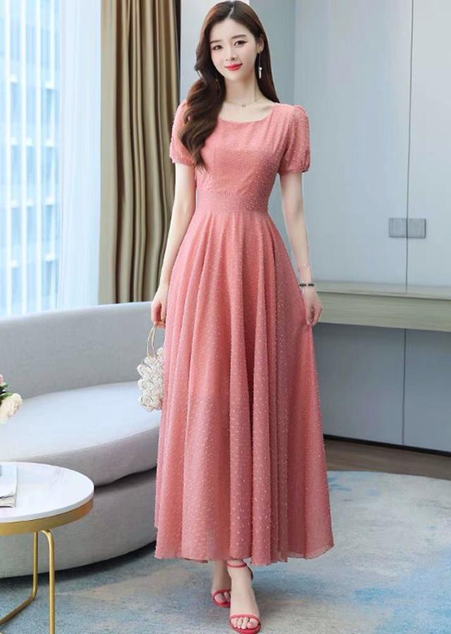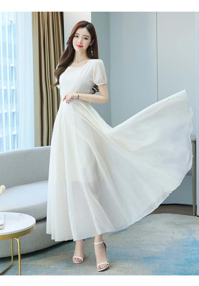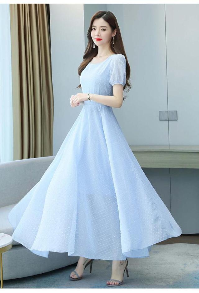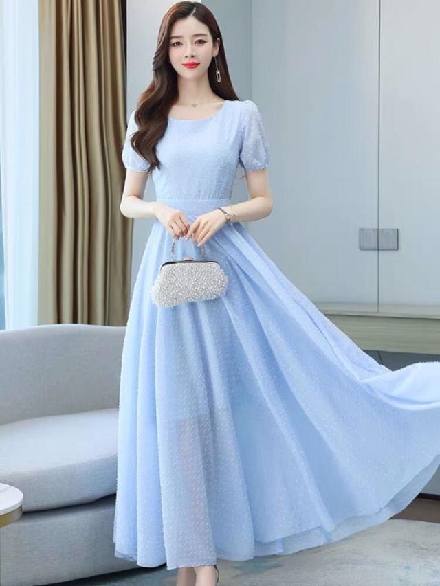 ワンピース ラウンドネック パフスリーブ ウエストマーク ハイウエスト ロング丈ワンピ クラシカル 甘め ガーリー ママスタイル 女子旅 清楚