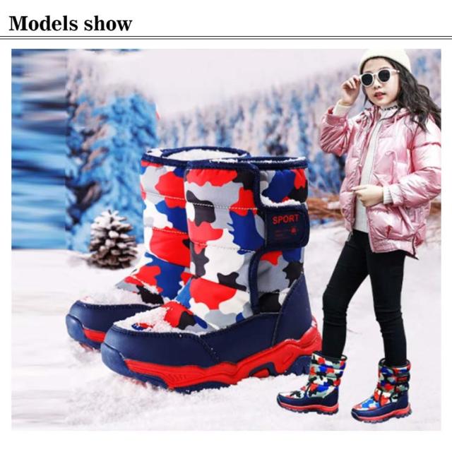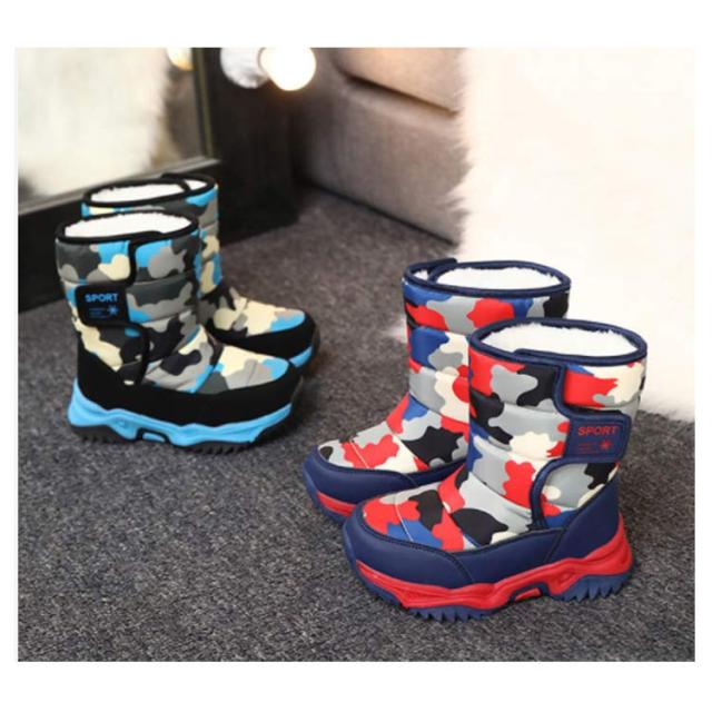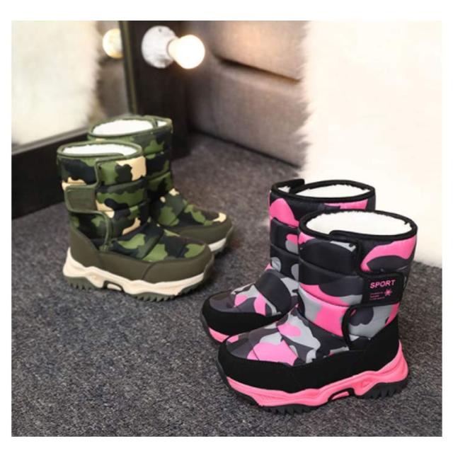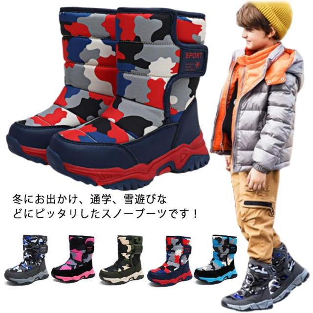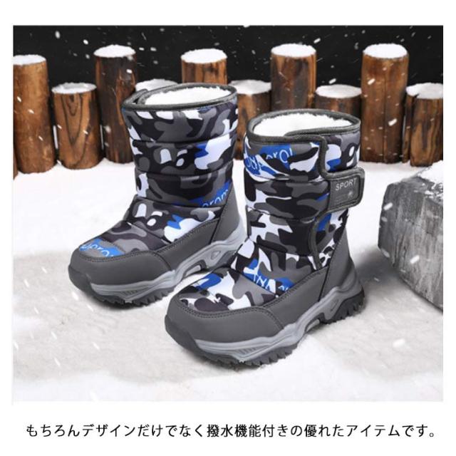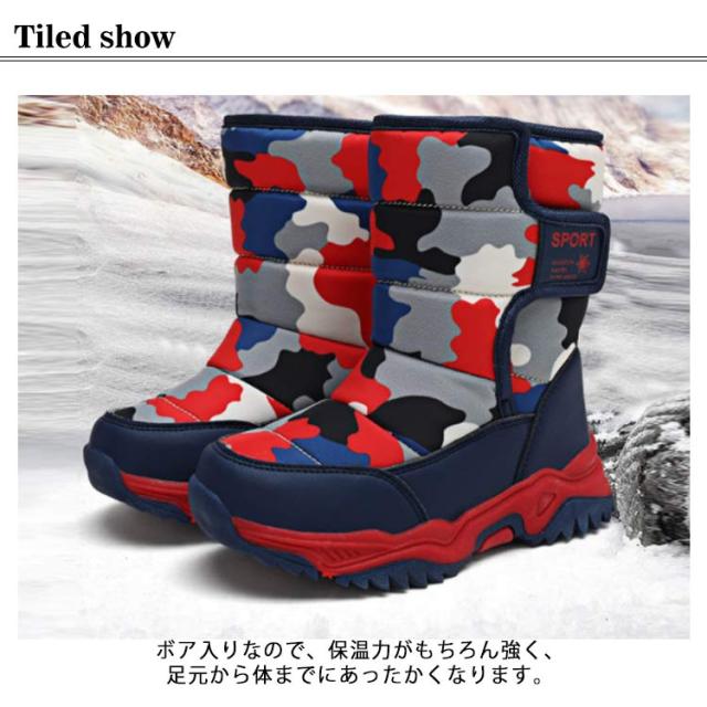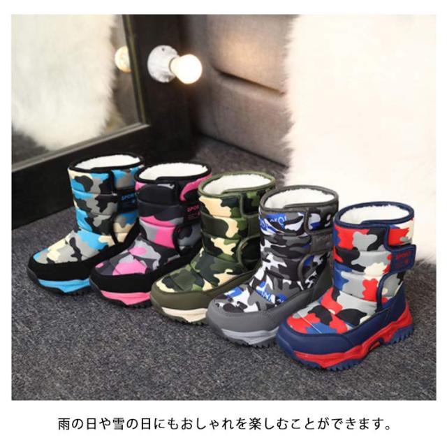 スノーブーツ キッズ 裏起毛 迷彩 ジュニア 防水 スノー ブーツ モコモコ 厚底 子供用 ウィンターブーツ 女の子 男の子 あったか スノーシューズ 暖かい ダウンブーツ ボア 防寒
