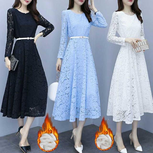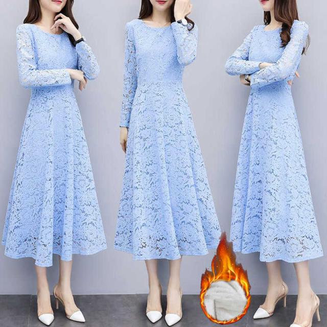 ロングドレス レースワンピース 秋冬 パーティードレス ワンピース マキシワンピ レディース 長袖 結婚式 二次会 お呼ばれ パーティー ラウンドネック 花柄 レース 20代 30代 40代 大きいサイズ 黒色 ブラック ホワイト ピンク ブルー 春 秋 冬 お呼ばれ