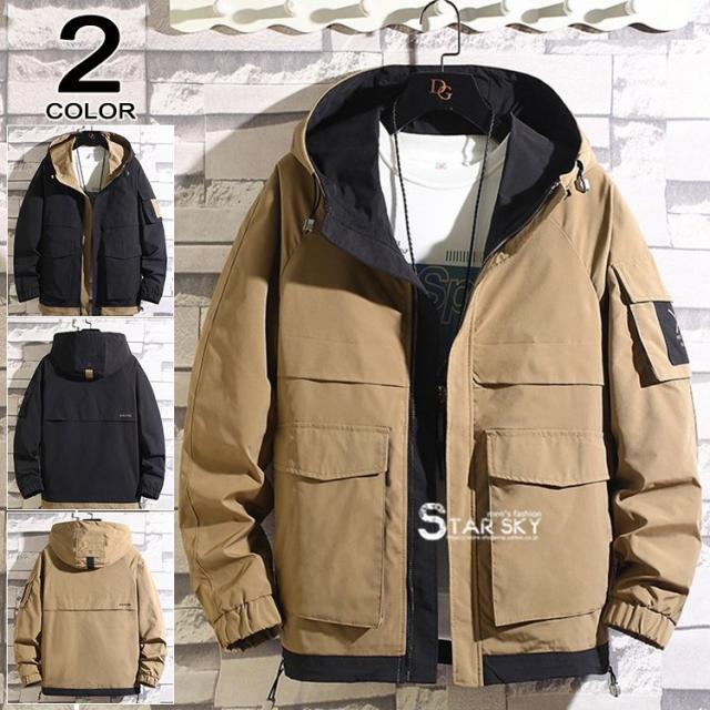 マウンテンパーカー メンズ ウインドブレーカー ジャケット コーチジャケット ジップパーカー ブルゾン 防風 大きいサイズ 秋