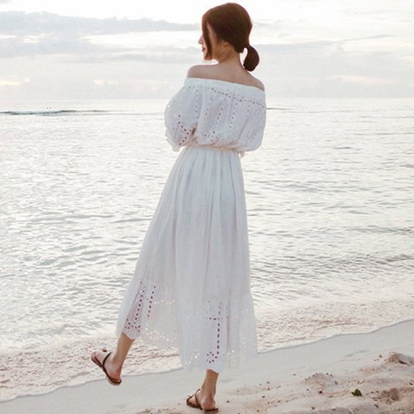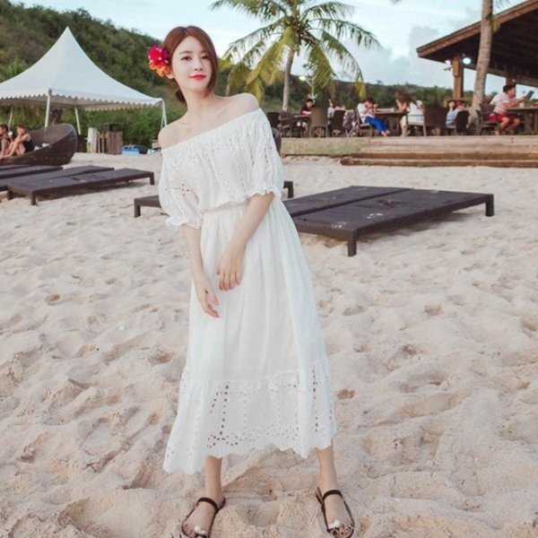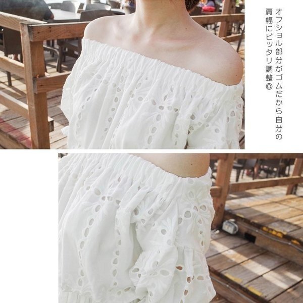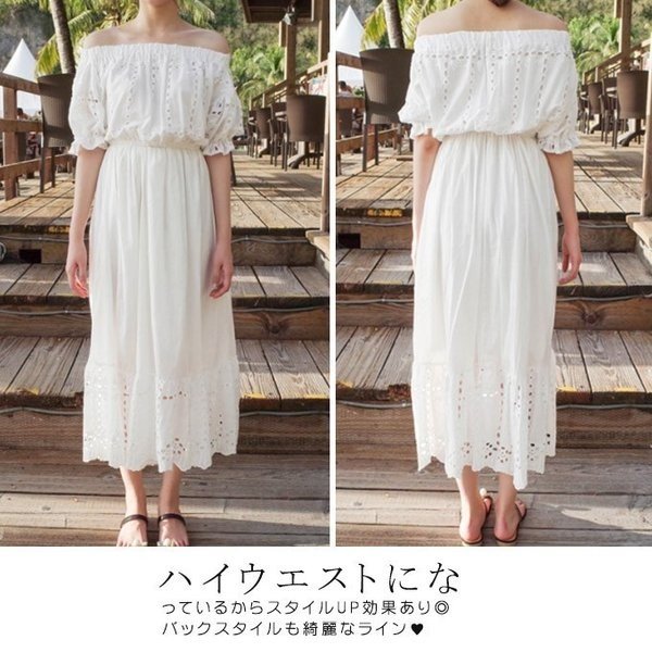 オフショルダーオールインワン ワンピース レース素材 清楚感UP 白ワンピース スタイルUP効果 オフショル 女子度UP ロング丈 2way マキシ丈