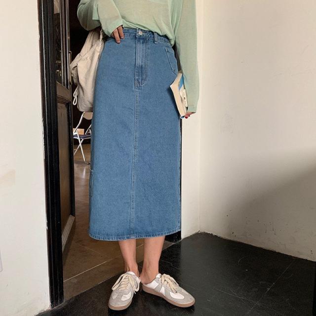 デニムスカート ロングスカート レディース 春服 春物 スリット ミモレ丈 スカート ブルー Aライン ボトムス 体型カバー カジュアル