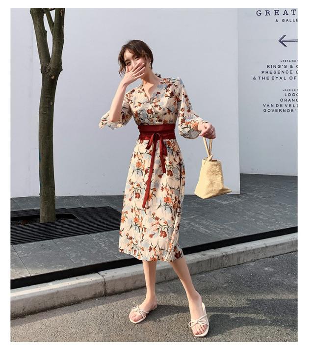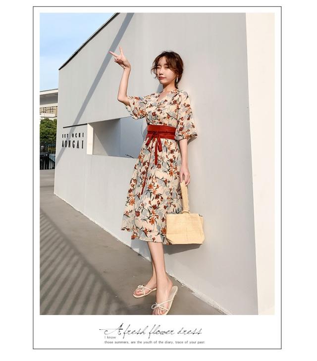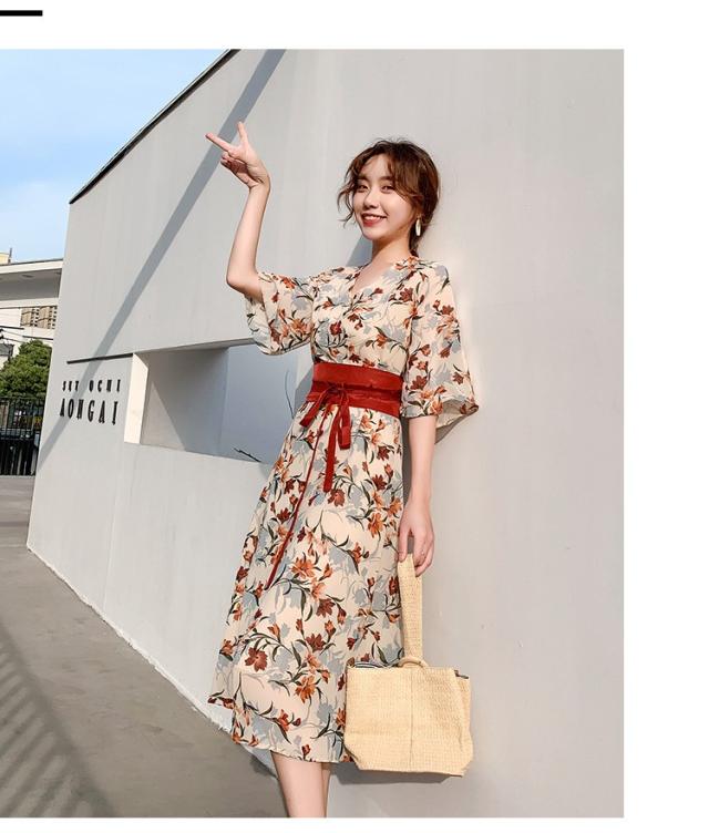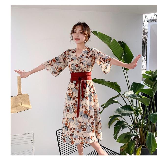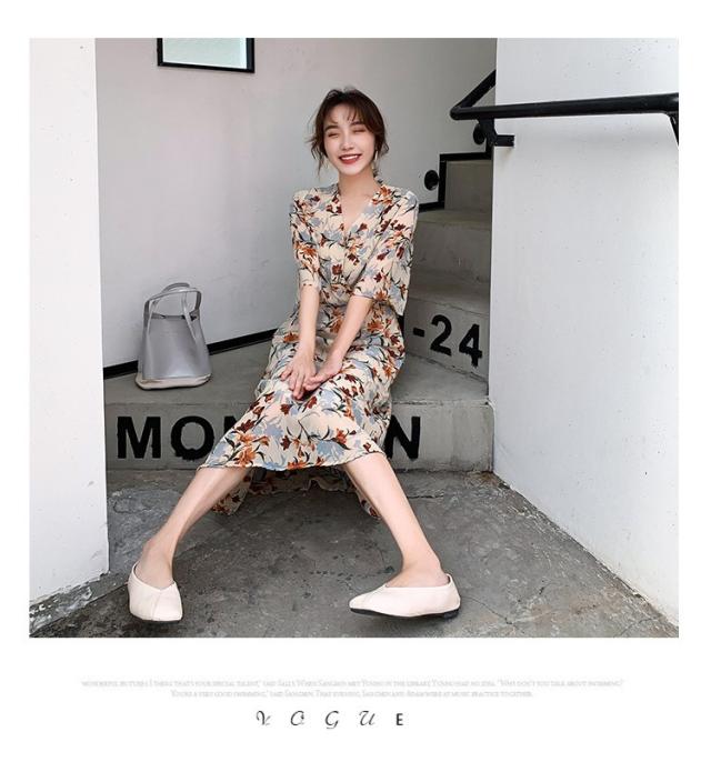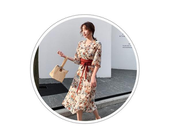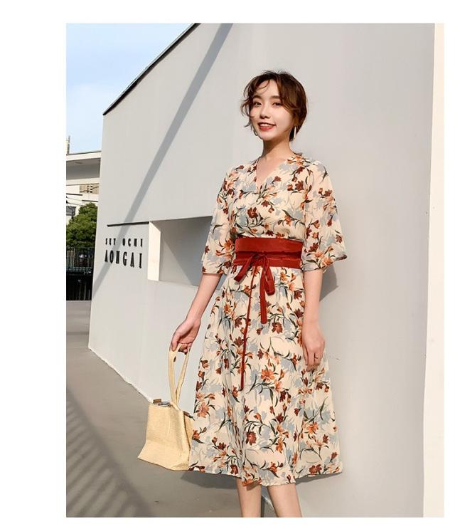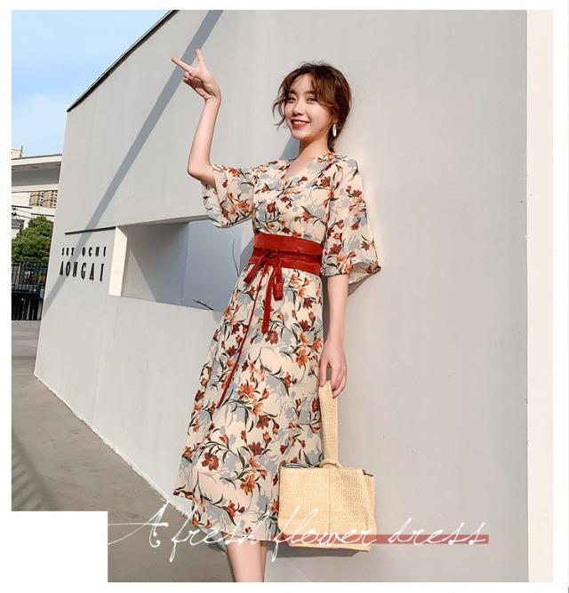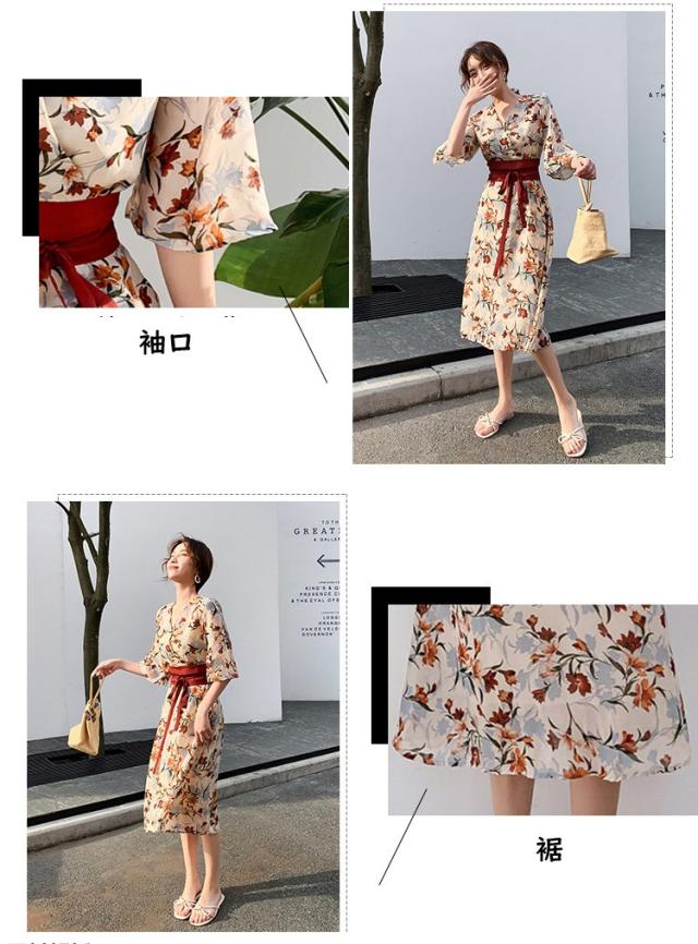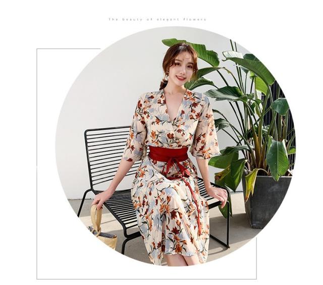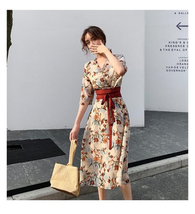 ワンピース レディース 40代 マキシワンピース 春夏 きれいめ シフォンワンピース 五分袖 Vネックワンピース 花柄スカート オシャレ 結婚式 お出かけ