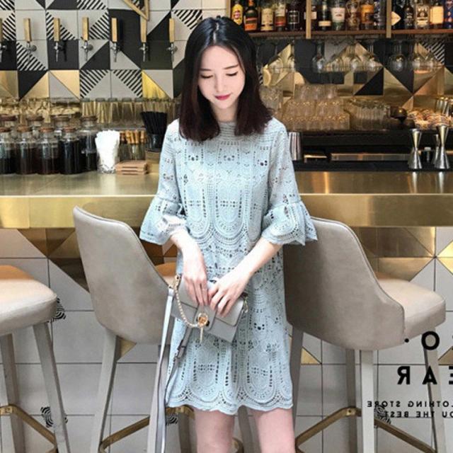 ワンピースドレス レディース 40代 ワンピース 秋 きれいめ 膝丈ワンピース 五分袖 レースワンピース ドレス 着痩せ 通勤 結婚式ドレス お出かけ 大人 30代