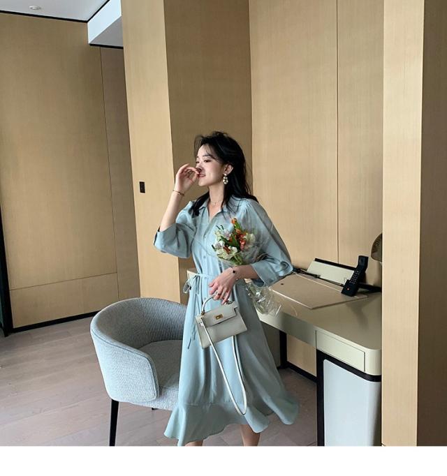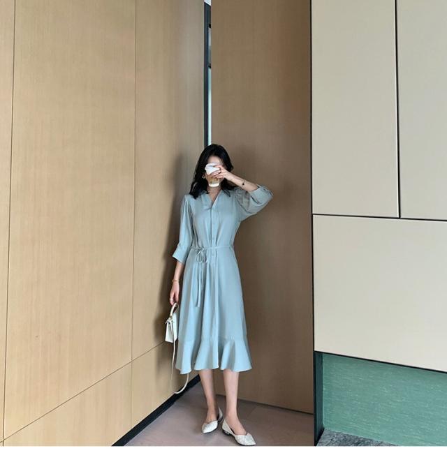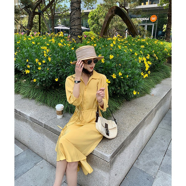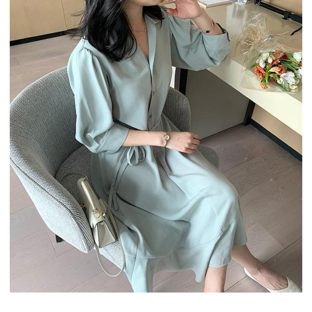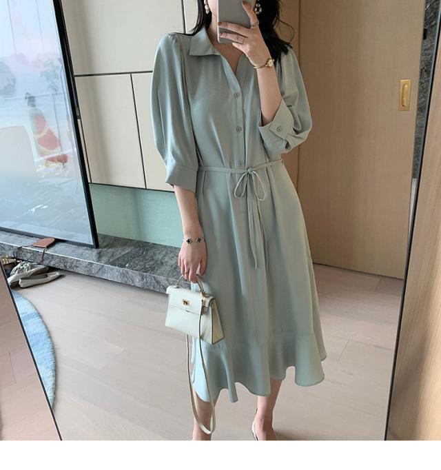 シャツワンピース レディース 40代 マキシワンピース 春夏 五分袖ワンピース 無地 シャツフレアスカート オシャレ 結婚式ドレス お出かけ 大人可愛い30代 50代